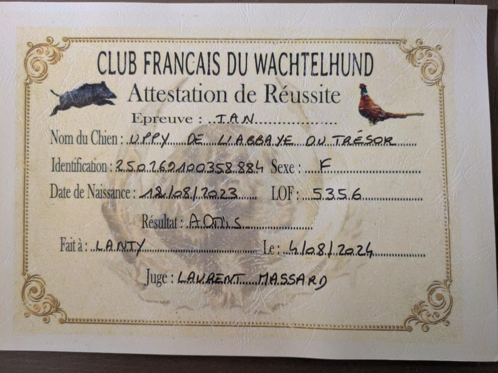 Chien Chien d'Oysel allemand Uppy De L'Abbaye Du Tresor