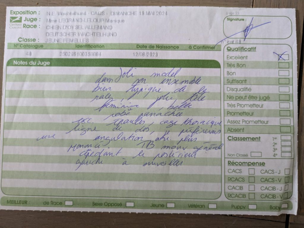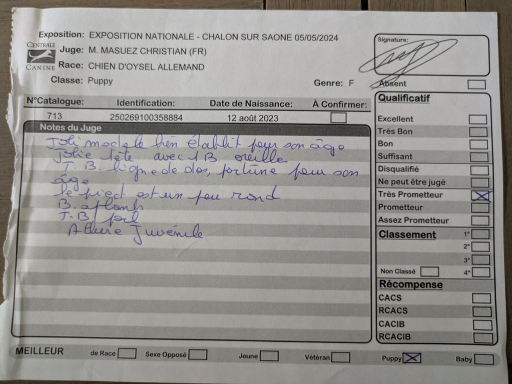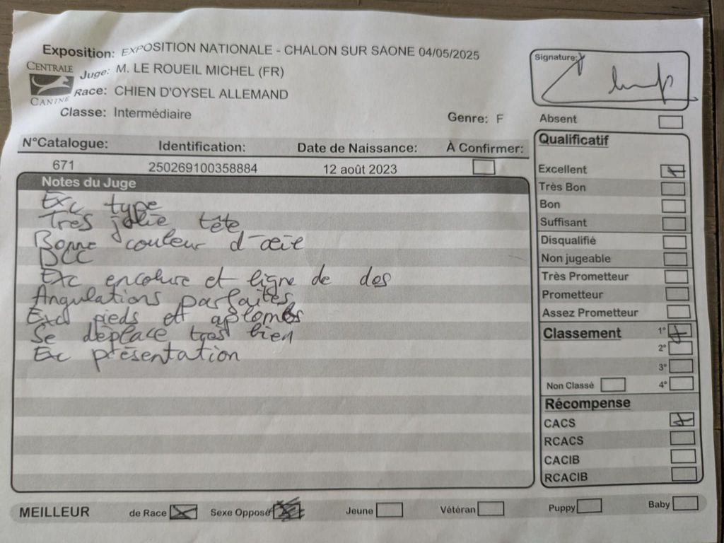 - 1er excellent CACS meilleur de race (BOB) 3ème du groupe 8