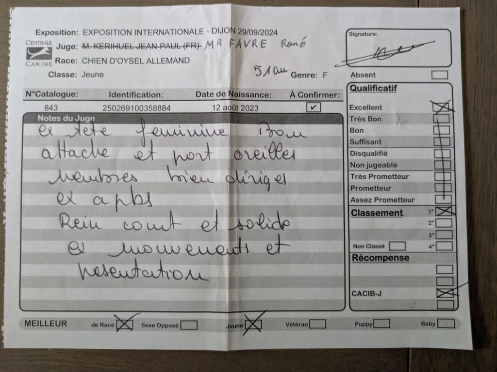 - 1er excellent CACIBJ meilleur jeune meilleur de race