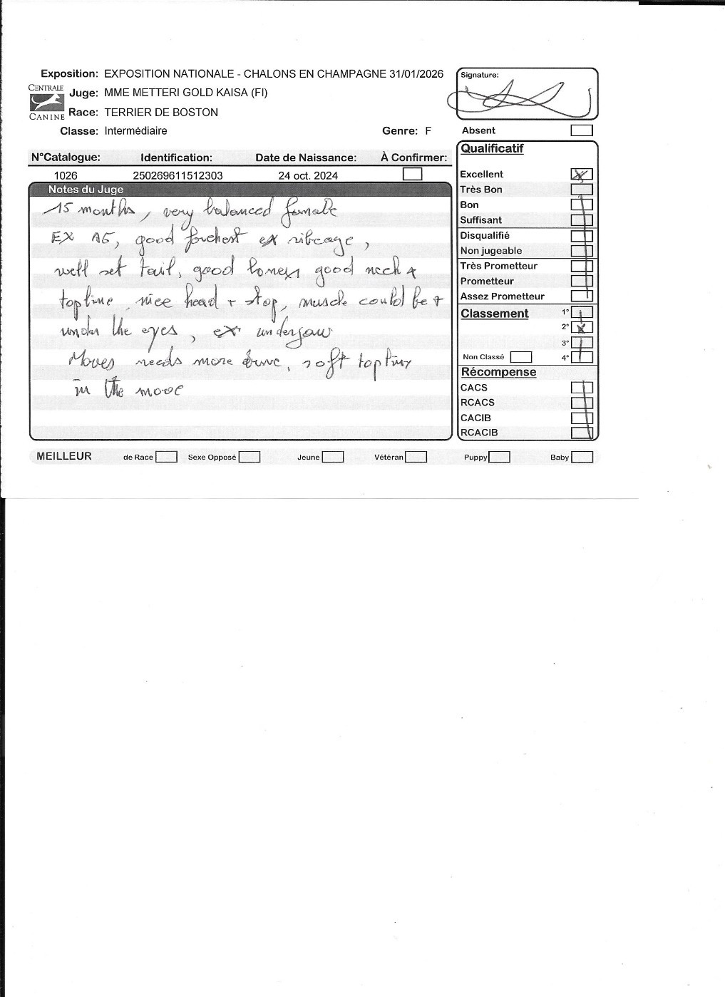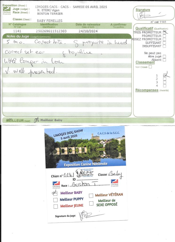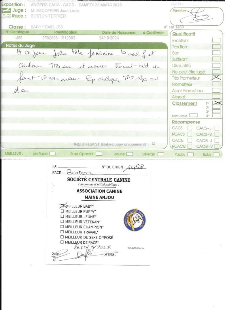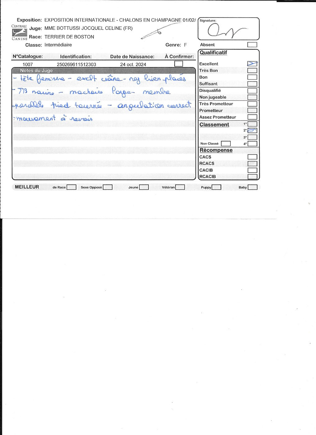 - 1° EXCELLENT CACIBjeune Meilleur jeune , 3° jeune groupe 9
