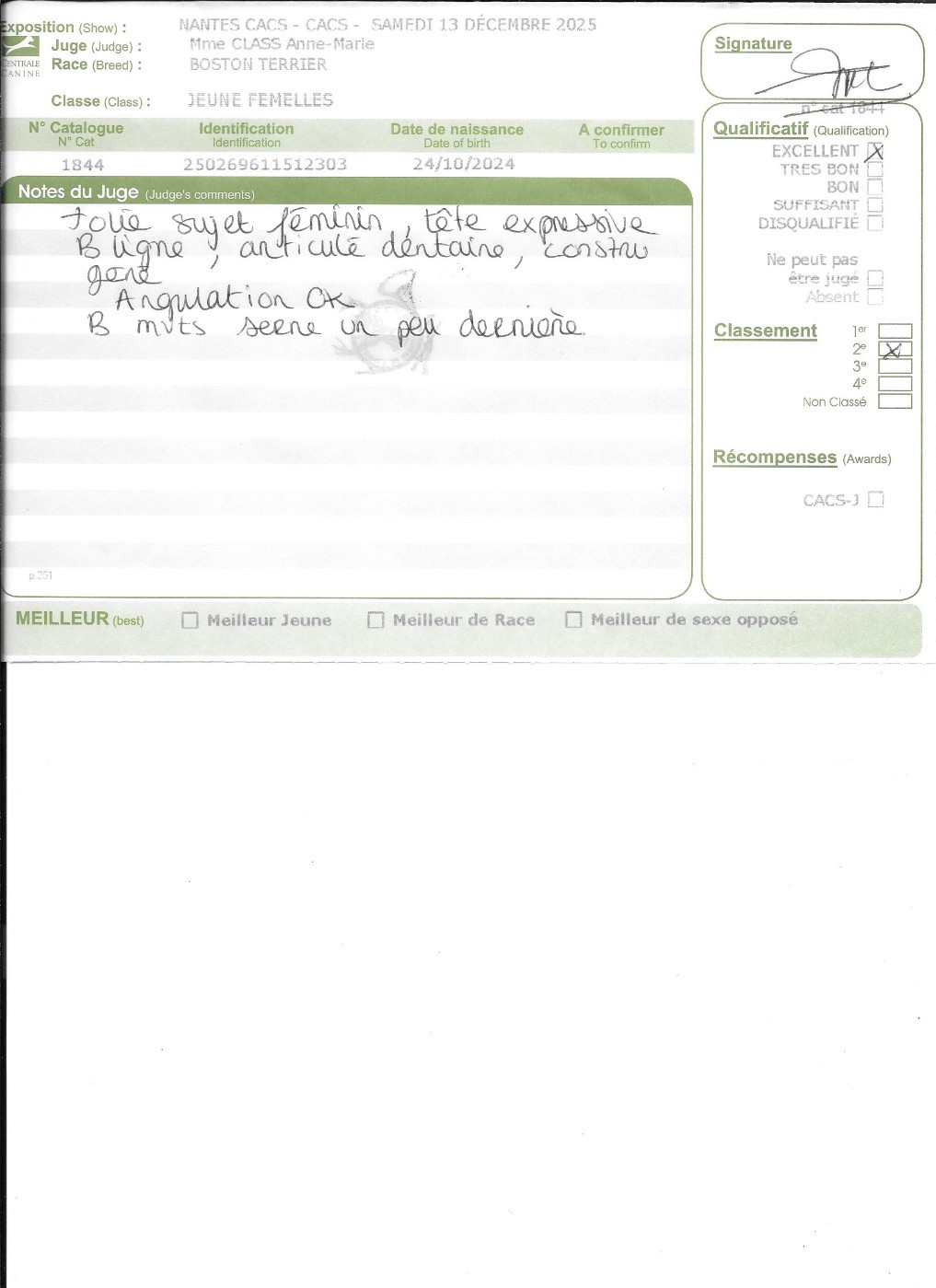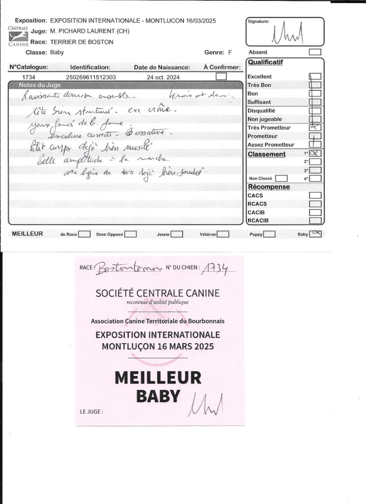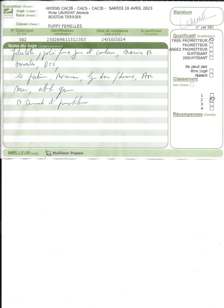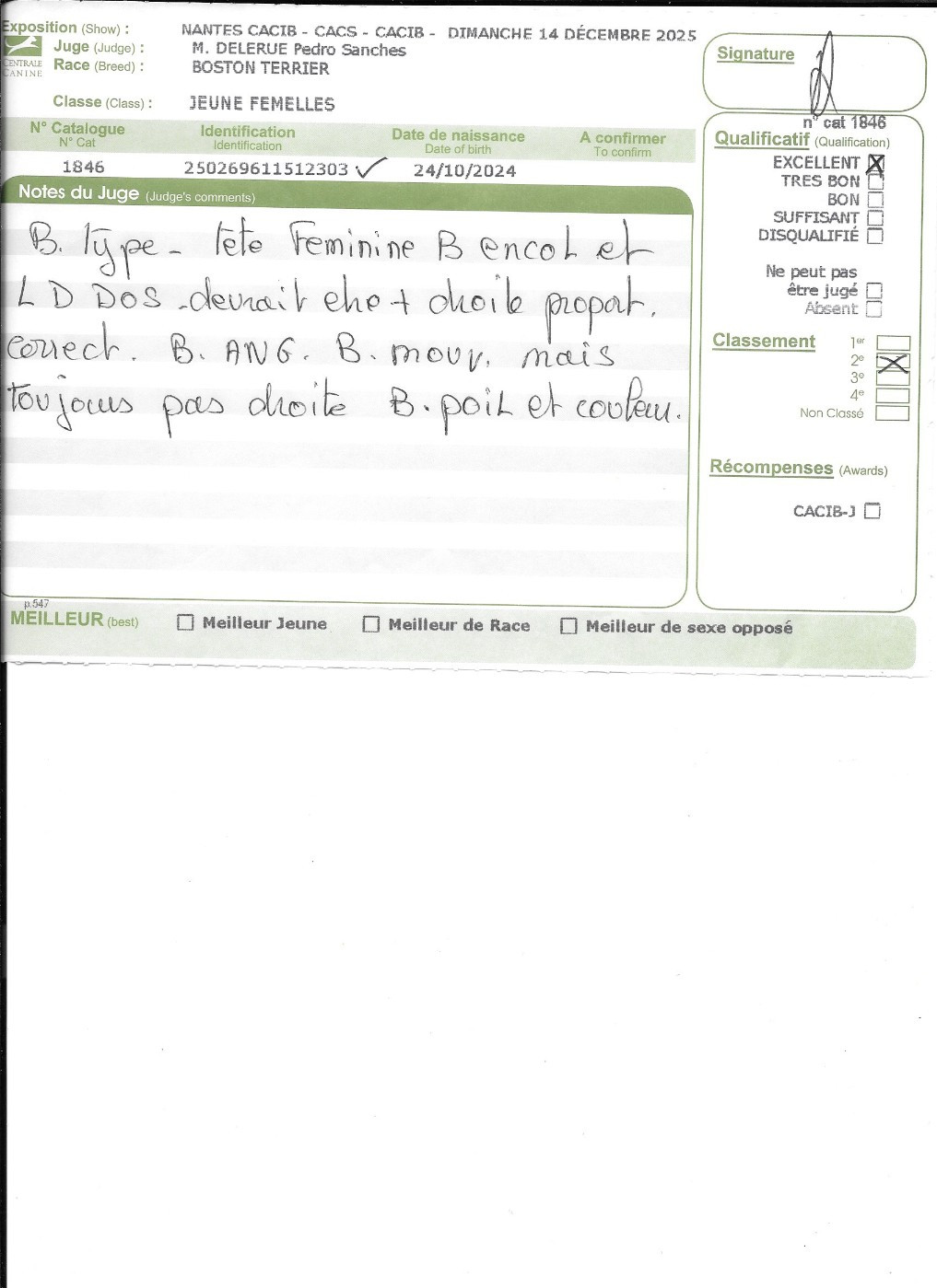 - 1° EXCELLENT CACIBjeune Meilleur jeune , 3° jeune groupe 9
