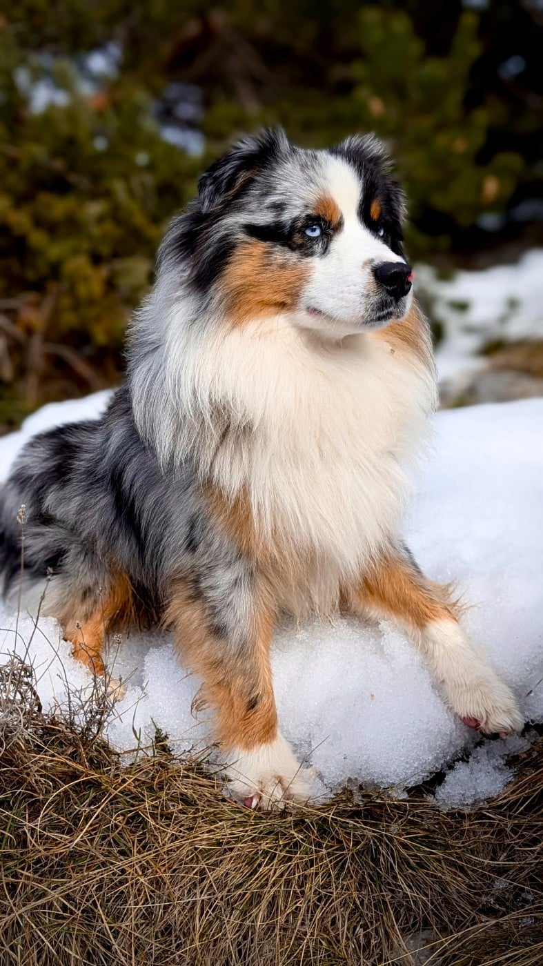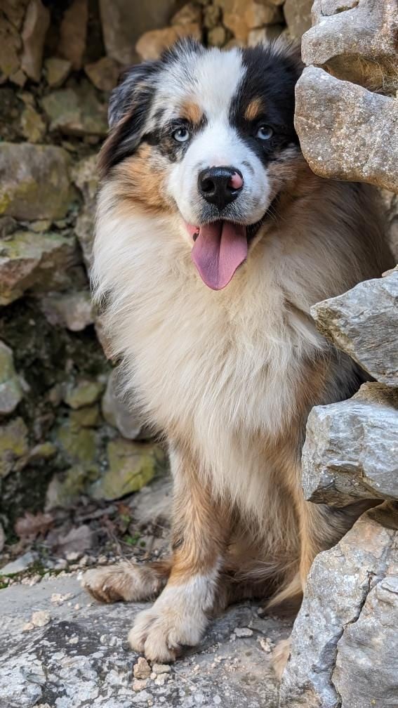 Lune est un mâle Berger Américain Miniature au tempérament équilibré et remarquablement doux. Affectueux, calme et joueur, il se distingue par sa grande sociabilité, en particulier avec les enfants, qu il affectionne tout particulièrement.Très attaché à l humain, il est en demande constante de contact sans jamais se montrer envahissant. Il n aboie pas, ce qui témoigne de sa sérénité et de son excellent équilibre nerveux. D un naturel un peu réservé lors des premières rencontres, Lune s ouvre rapidement et fait preuve d une gentillesse rare.Son caractère stable, sa capacité d adaptation et sa douceur en font un excellent représentant de la race, tant sur le plan familial que pour la reproduction. Lune présente un excellent profil pour transmettre des qualités comportementales recherchées : calme, affection, sociabilité, et absence d aboiements intempestifs. Tests de santé réalisés : PRA-0 (2025) : Indemne d atrophie rétinienne progressive Anomalie de l oeil du Colley (AOC) : Homozygote normalAtrophie Progressive de la Rétine (APR-prcd) : Homozygote normalDystrophie Neuro-Axonale : Homozygote normalSensibilité Médicamenteuse MDR1 : Homozygote normal Achromatopsie : Homozygote normal Ataxie Spinocérébelleuse : Homozygote normal Cataracte Héréditaire HSF4 : Homozygote normal Céroïde-Lipofuscinose Neuronale CLN6 et CLN8 : Homozygote normal Hyperuricosurie (HUU) : Homozygote normal Maladie de von Willebrand (VWD1) : Homozygote normal Rétinopathie Multifocale (CMR1) : Homozygote normal Myélopathie Dégénérative (DM) : Homozygote normal Macrothrombocytopénie Congénitale : Homozygote normal Autres caractéristiques génétiques : ADN : DNAComp Porteur du gène Marron (B/b) Hétérozygote Merle (M/m)Queue longue Radio Dysplasie : Hanches HD-A & Coudes ED-0 (Excellente qualité articulaire)