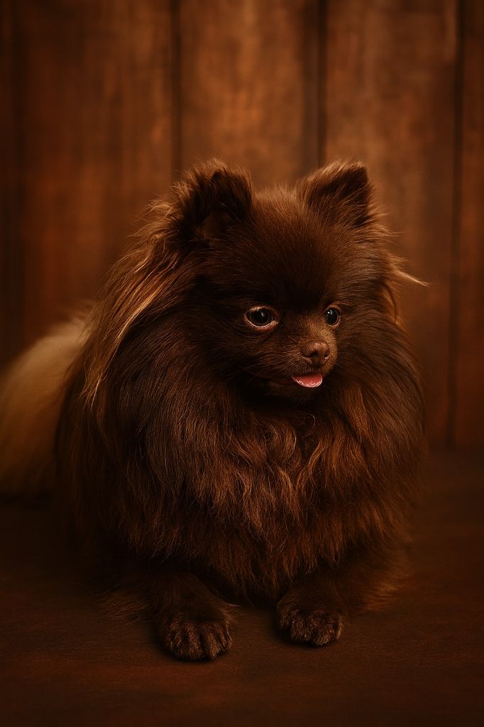 Nous vous présentons Vulcain Black Moon Star's, magnifique Spitz Nain LOF de couleur chocolat, né le 9 mars 2024.