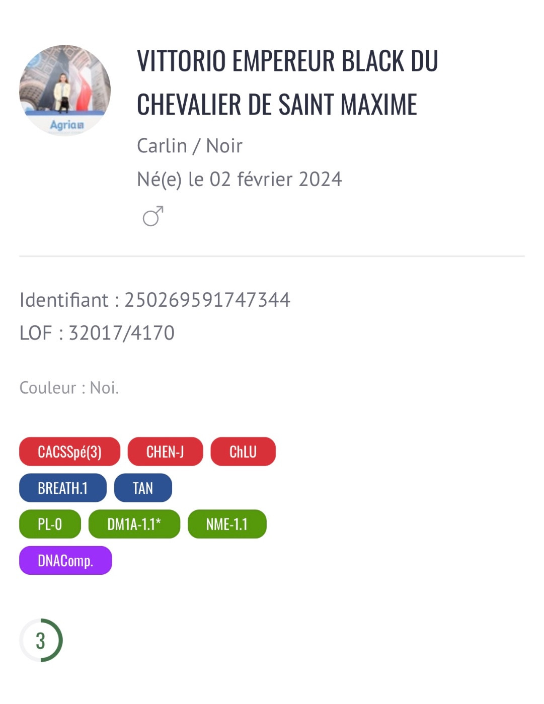 Pédigree de CH. Vittorio empereur black Du chevalier de saint maxime