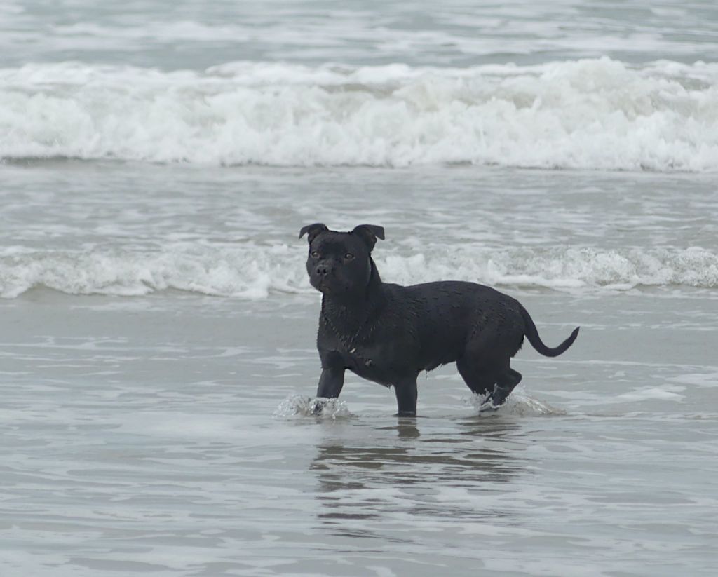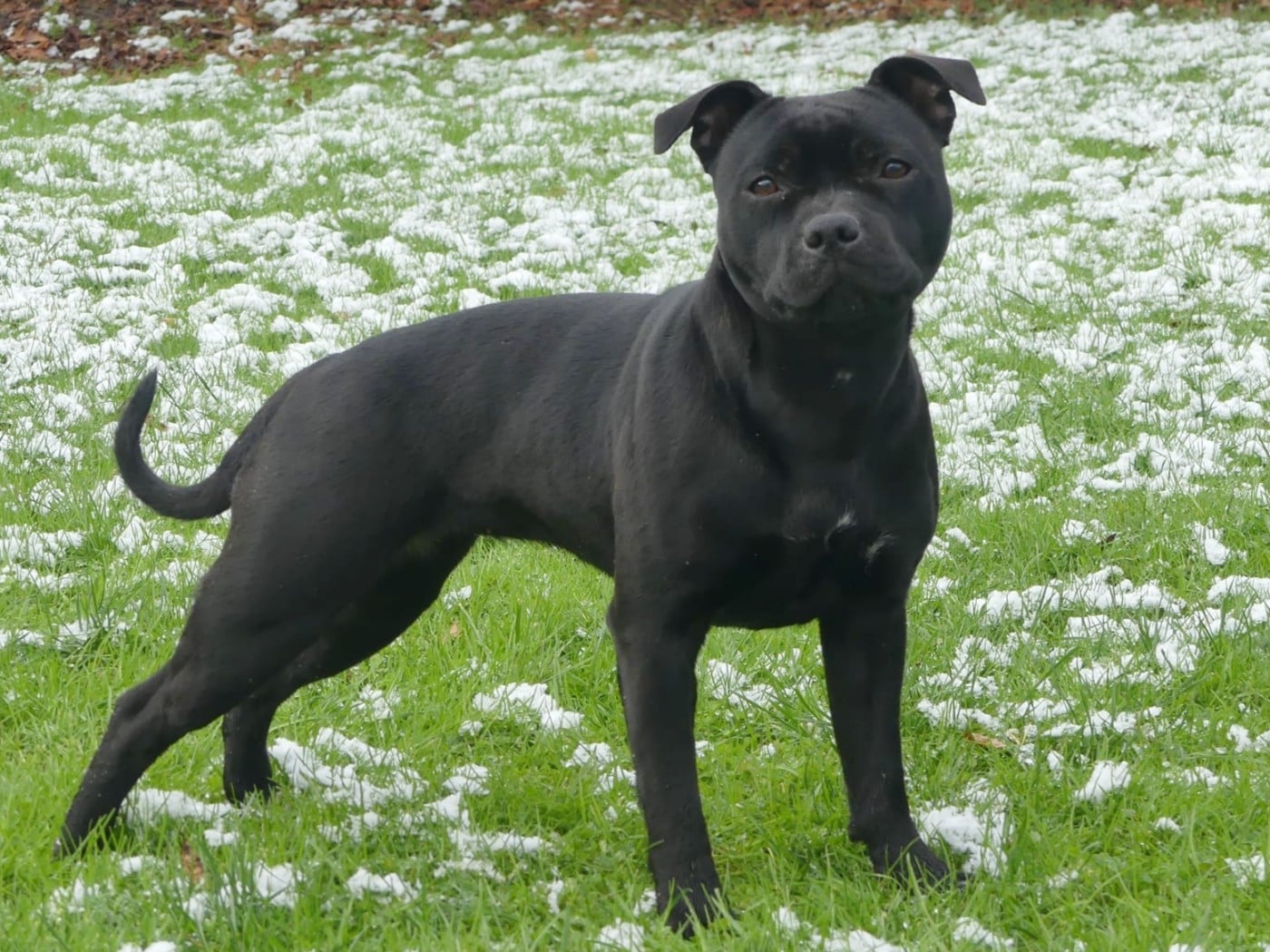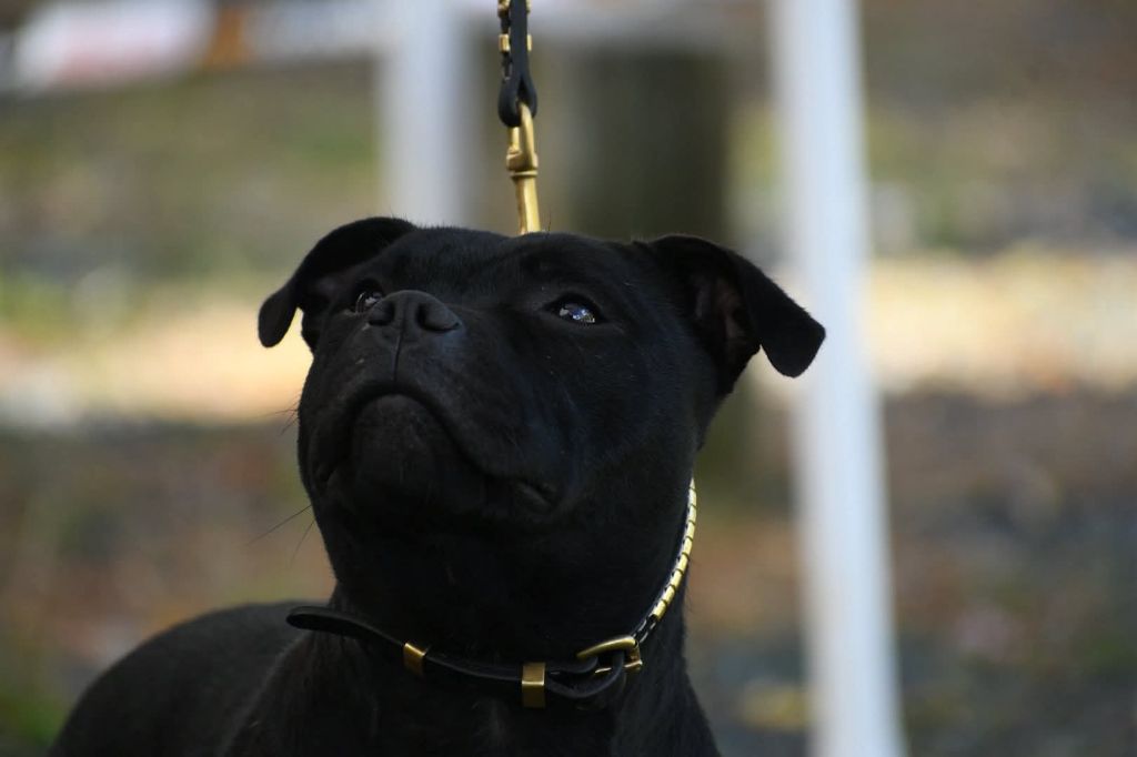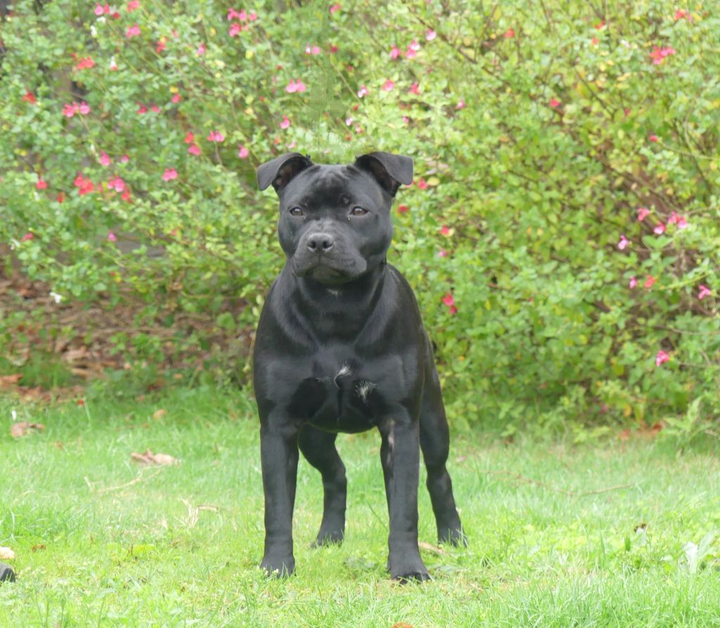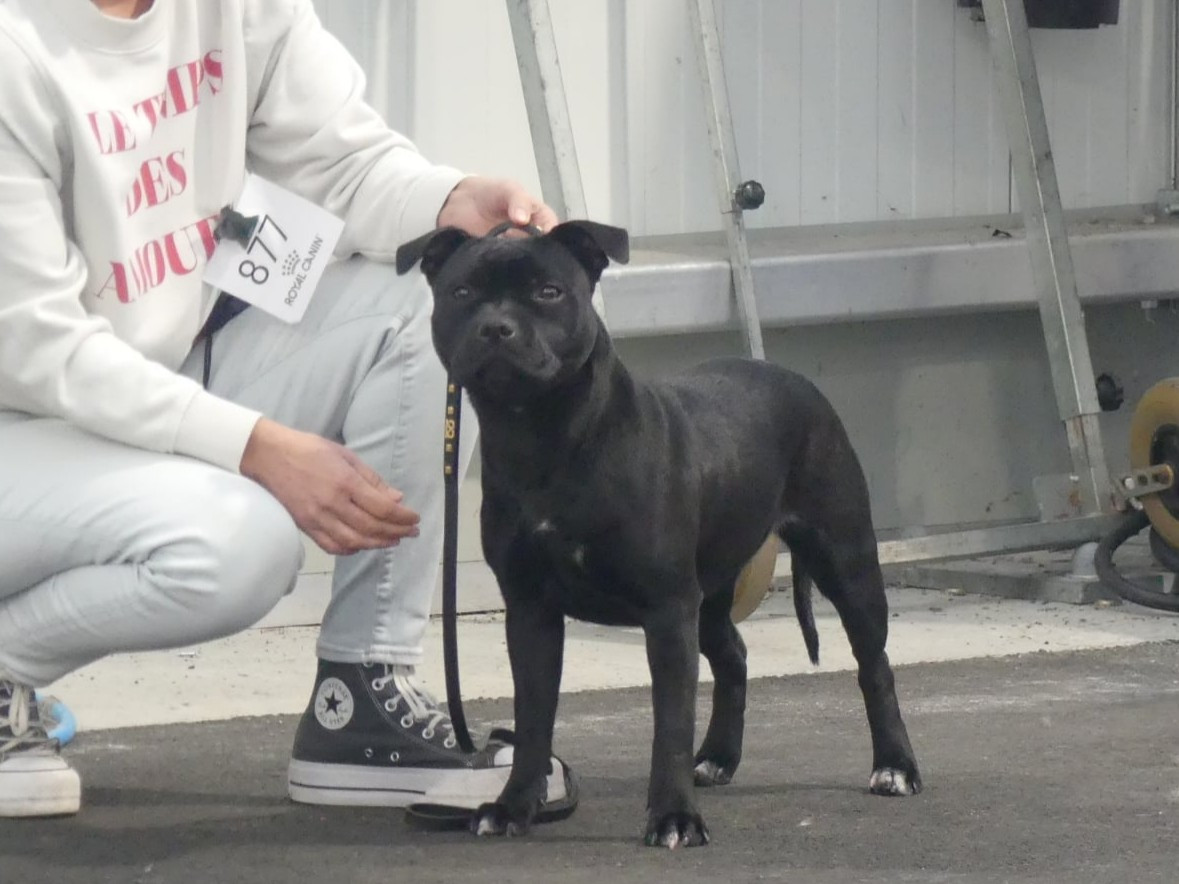 Chien Staffordshire Bull Terrier A black pearl Ofthe Puil