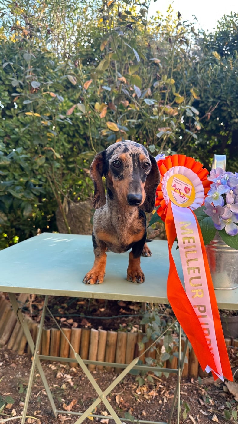 Chien Teckel poil ras Au sud, le mimosa des guerriers Cathares