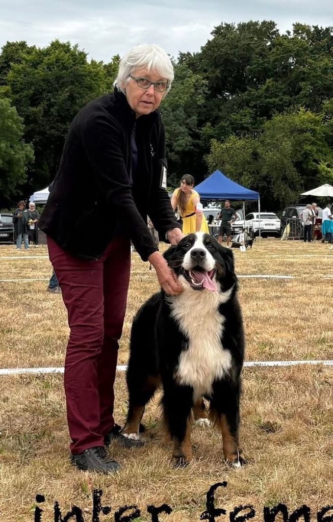 Tête féminine, bonnes proportions, bel oeil, bonnes encolure, ossature et construction, pieds et applombs, membres bien dirigésBonne poitrine dans ses 3 dimensionsRein solideExcellente pigmentation, excellent poil très bien entretenuMouvements bons, présentation