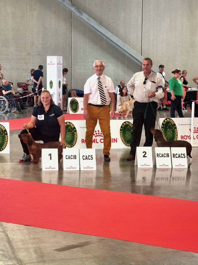 CLASSE OUVERTE. 1ER EXCELLENT.TB. sujet bien construitJolie tête dans son ensembleB. oreilles.L'oeil pourait être légerement plus foncéTB. ligne de dos, poitrineSerre des postérieurs à la démarche.B. allures.