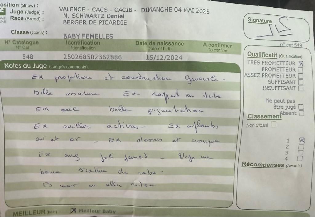 Manifestion : CACIB - Juge : Mr Kerfriden
