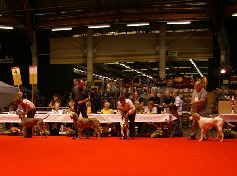 CACIB homologué par la FCI le 19.06.2007.<br>Excellent ensemble.<br> SE PRÉSENTE SEULE.<br> Excellent caractère.<br> (Mise bas 3 mois) en pleine forme.<br> Excellente tête. <br>Dentition contrôlée correcte. <br>Belles oreilles. <br>Excellente sortie d'encolure. <br>Dessus parfaitement soutenu. <br>Excellentes poitrine, épaule et angulations postérieures.<br> Mouvements harmonieux.<br>Vicky à sa première exposition après avoir sevré sa portée de 10 chiots nés le 31 d'août 2006,