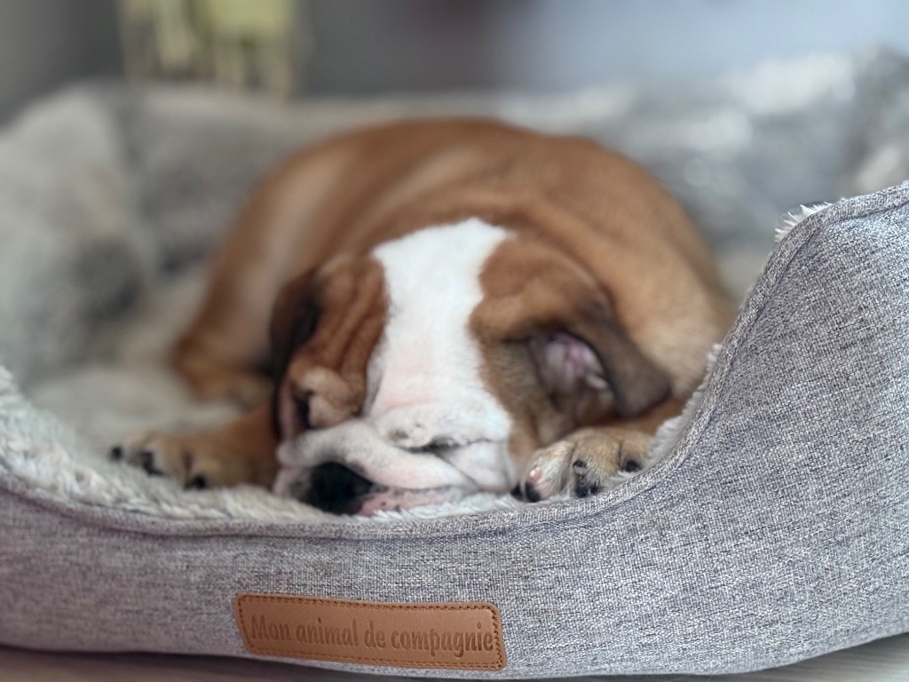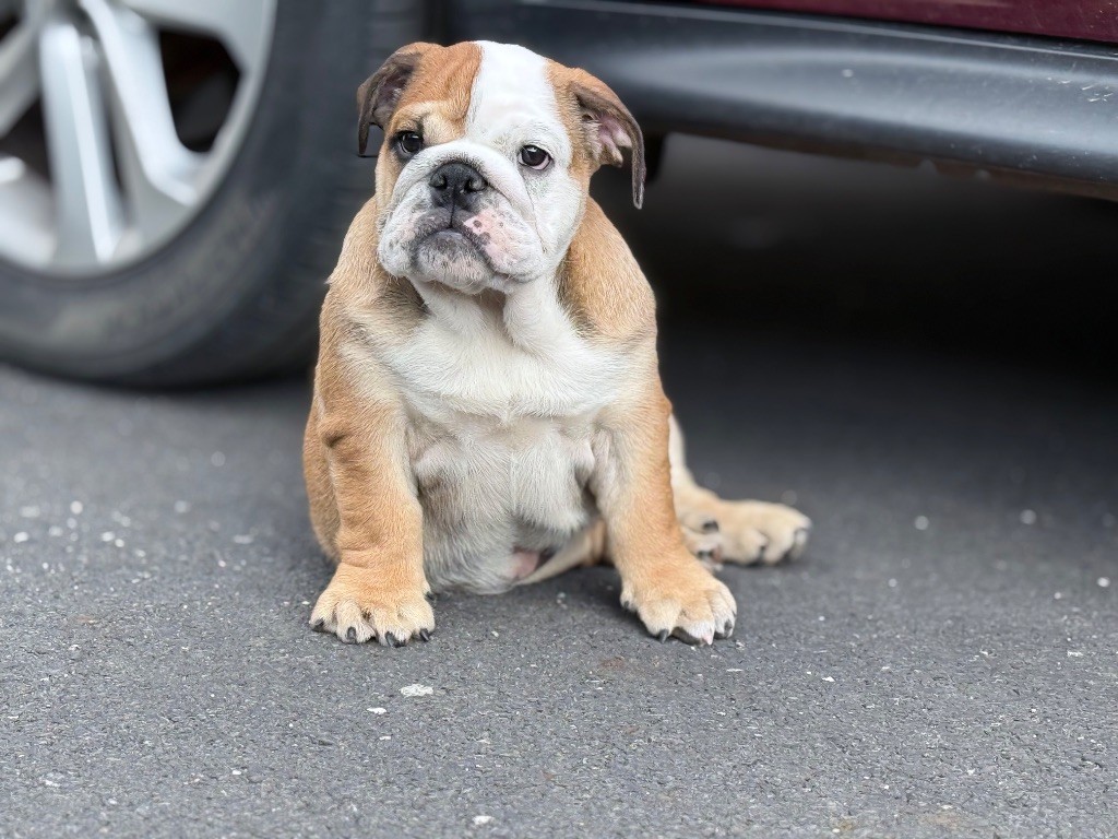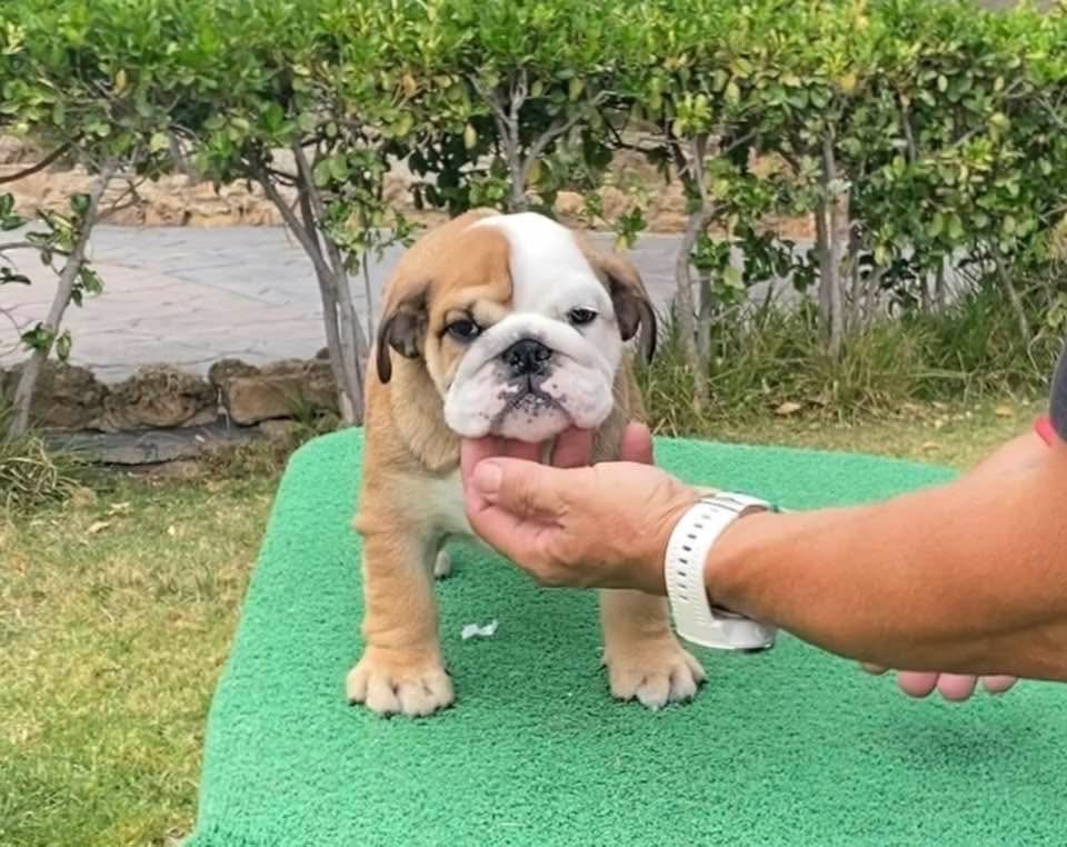 Jolie modèle, bien typée, bien ouvert dans son avant, antérieur parallèle, solide avec jarret marqué, forte ossature, belle croupe et queue présente, jolie tête ,crâne déjà plat et larges ,oreilles en rose ,truffe bien remouchée et saine, se déplace bien
