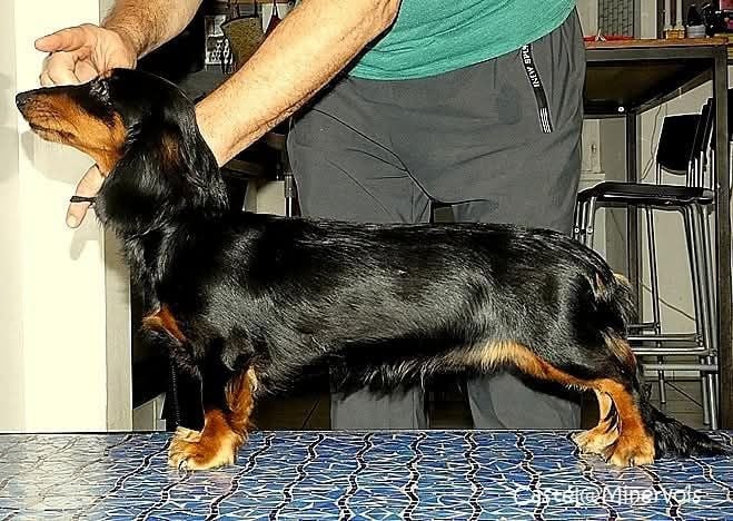 Chien Teckel poil long Athenaïs Good Spotted Paradise