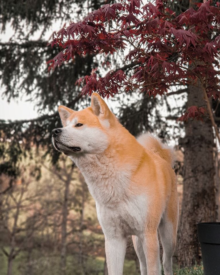 Akamaru est un Akita équilibré, intelligent, étonnamment sociable avec ses congénères (même de même sexe) et proche de l'humain. Il s'entend bien avec les chats et autres animaux (habitués lapins, chevaux, poules). Il vit en famille et connaît les règles de la maison, il s'entend bien avec les enfants.