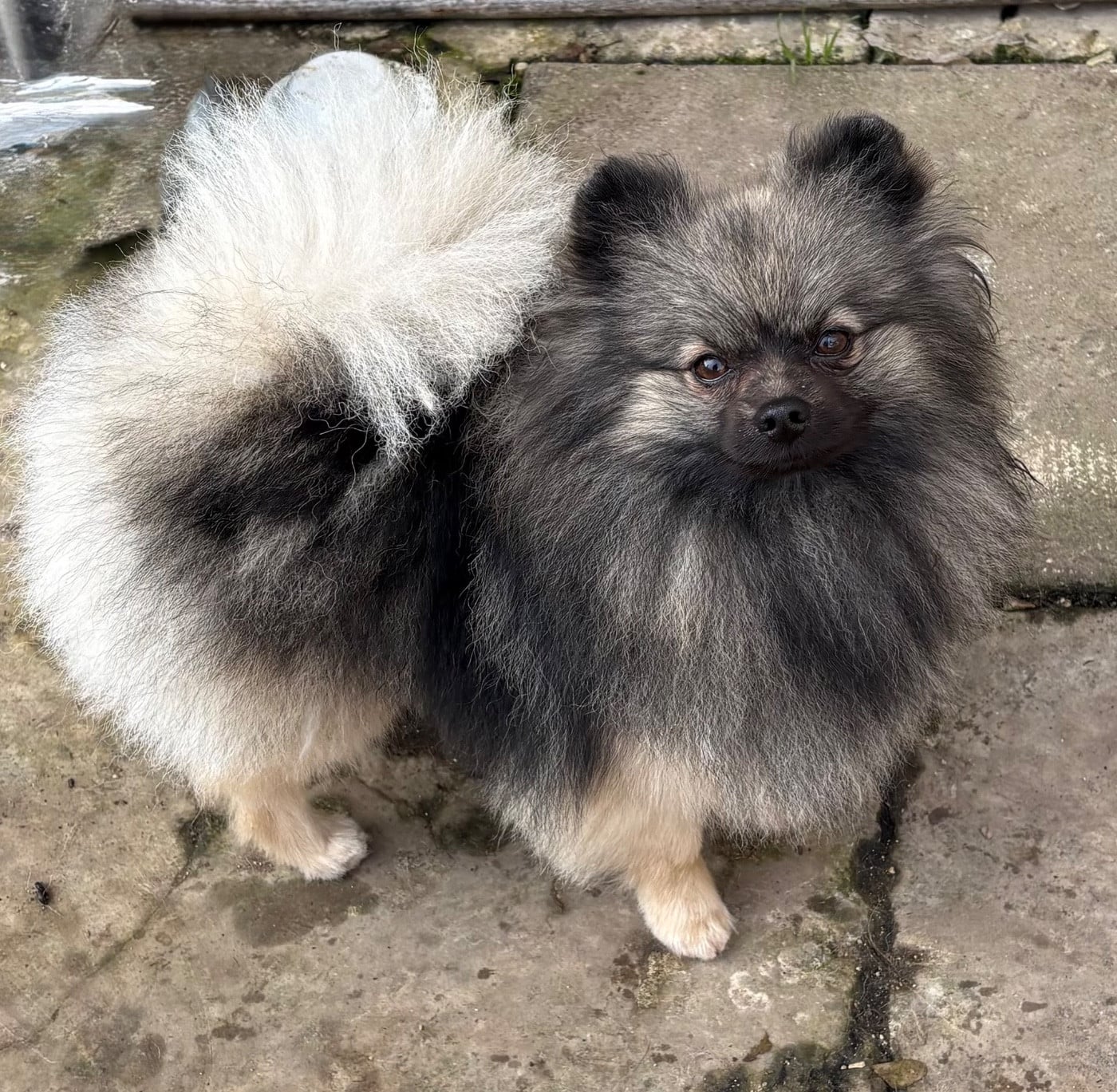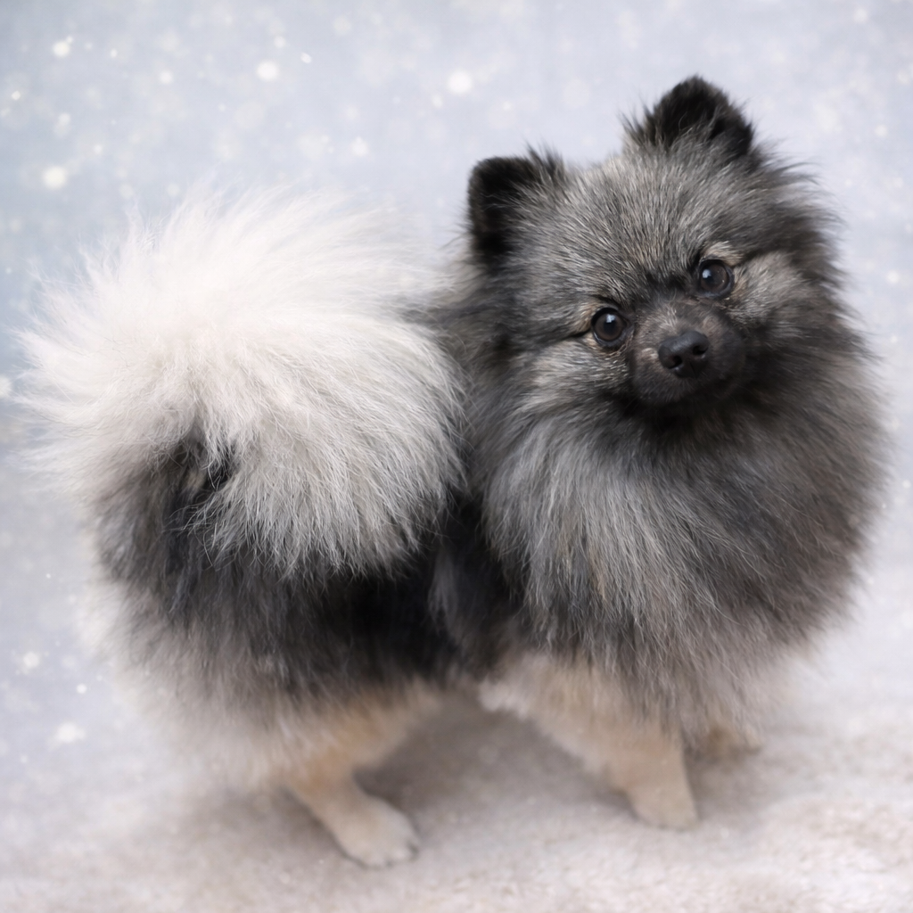 Né le 16 juin 2024 à l'élevage de Saint Montange, notre petit Vox populi est issu d'une excellente lignée de petits spitz gris loup, entièrement AW,