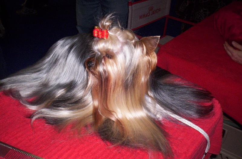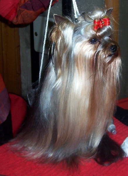 Exc taille et Format.Exc Texture.Exc Denture.Bon applombs AV coudes bien au corps.TB angulation AR.B attache de fouet un peu trop sur le dos !!Exc ligne de dessus à la marche .Exc mouvements AV et AR