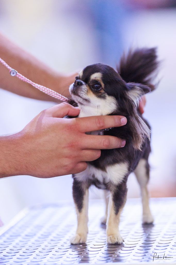 Dès que j’ai croisé le regard de Kira sur une photo de son éleveuse. Ça était le coup de foudre. Elle est issue principalement de champions. C’est une femelle très douce, calme, un caractère en or. Elle est très bien construite, courte et très compacte, une très belle tête en pomme, chanfrein court, mais un stop très marqué. Une perle. Grâce aux différents excellents résultats, Kira est multi jeune championne internationale.
