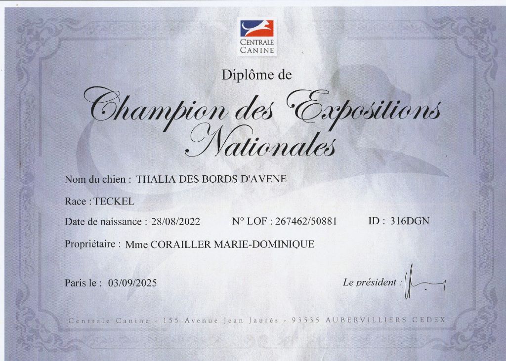 Pédigree de CH. Thalia des bords d'avene
