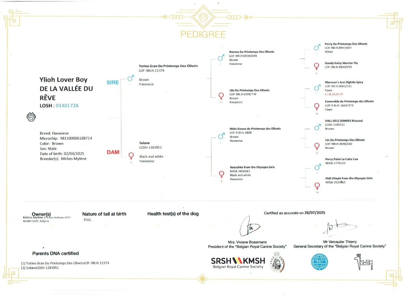 Pédigree de Ylioh lover boy de la vallée du rêve