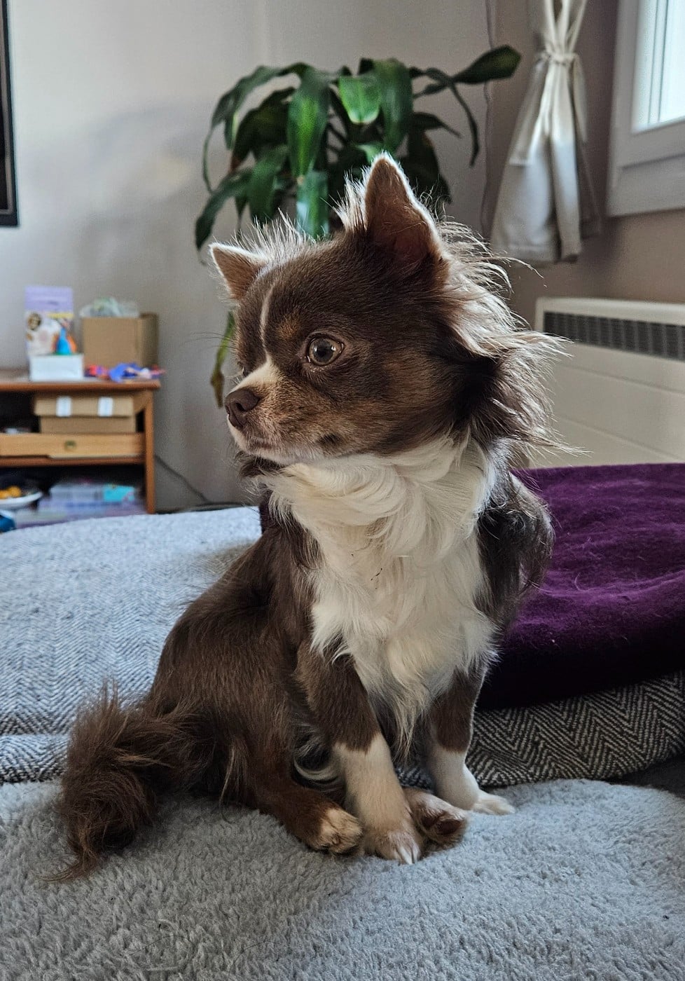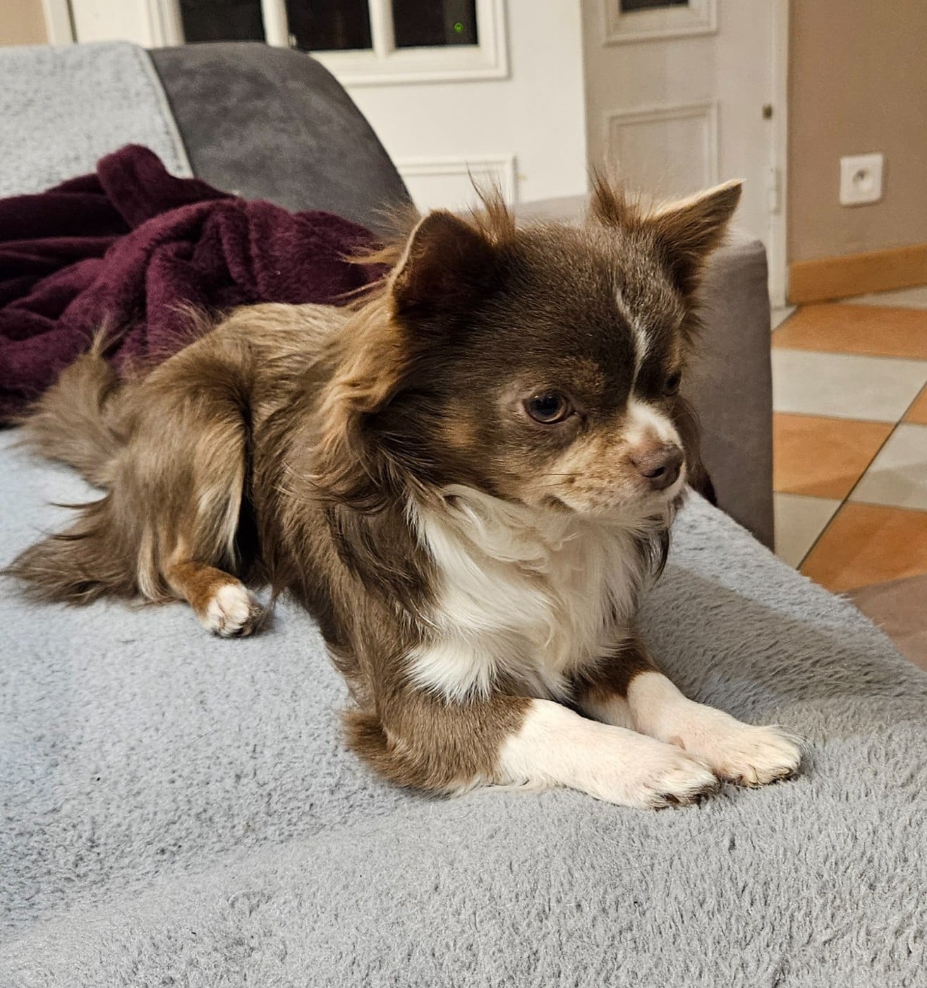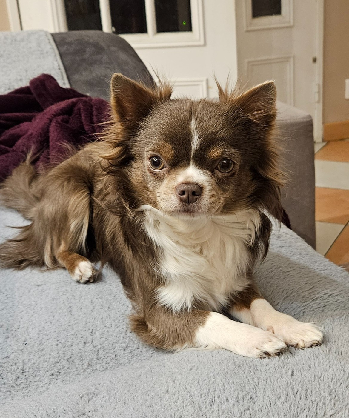 Magnifique mâle lavande tricolore (et sûrement bringé), inscrit au LOF (pédigrée complet), né le 03/04/2025, pucé, vacciné, vermifugé régulièrement. Testicules en place, dentition en ciseaux 6x5 et poids de 2.7kg. Déjà une très belle fourrure, nez court et carré. Caractère calme, pas agressif et se soumet aux autres chiens, pas destructeur, joueur, propre (jour et nuit depuis l'âge de 9 semaines), aboie juste pour prévenir, réservé avec les étrangers et s'habitue ensuite, habitué à vivre en meute, n'aime pas forcément les trajets en voiture mais ne dit rien et n'est pas malade. Pour vie de famille ou élevage. ADN + filiation effectués et possibilité de lui faire les tests génomiques de la SCC. N'hésitez pas à me contacter pour toute information.