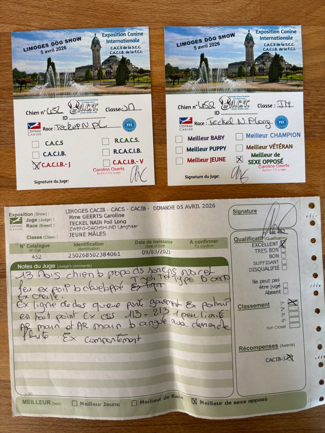 - 1er EXC CACIB jeune - MEILLEUR de SEXE OPPOSÉ