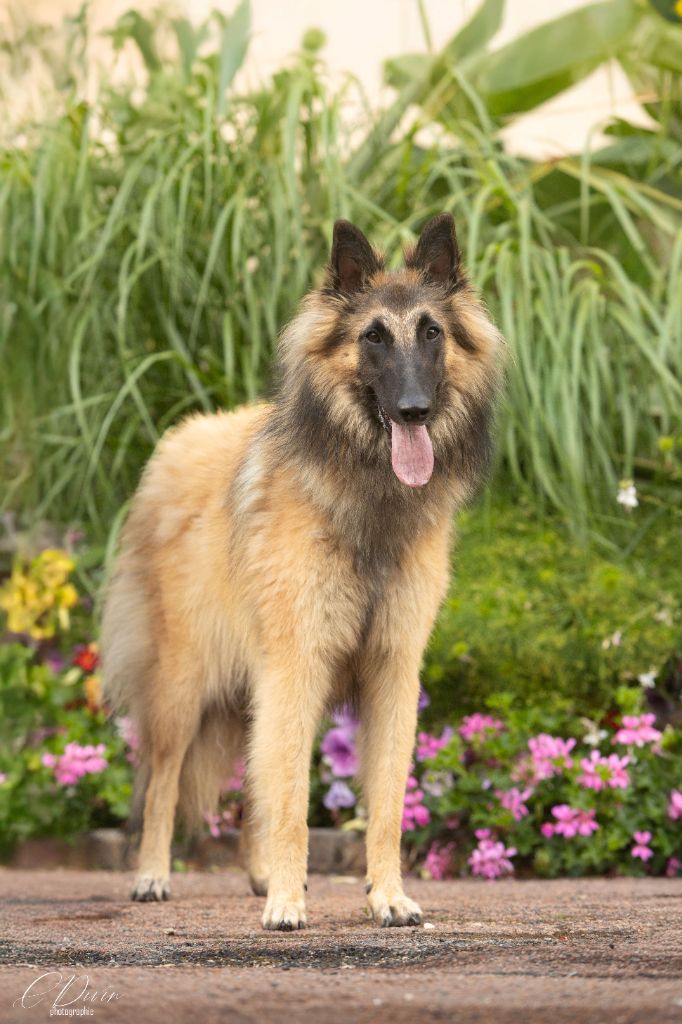 C'est une gentille chienne très énergique qui obitent d'excellents résultats en expositions à décroché un excellent non classé en classe jeunes femelles Tervueren à la Nationale d'élevage 2025