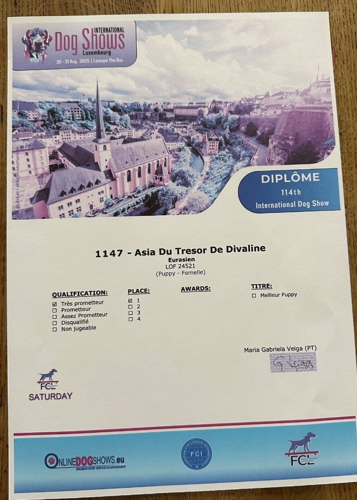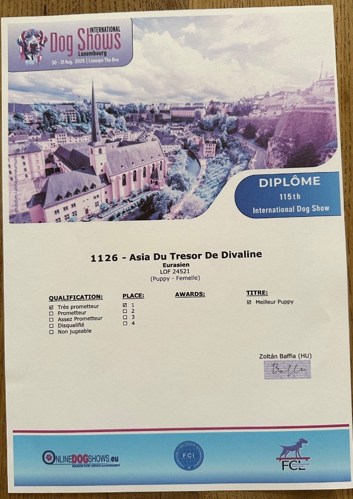 International Dog Show Luxembourg Mme Veiga samedi 30 août 2025 puppy très prometteur 1er
