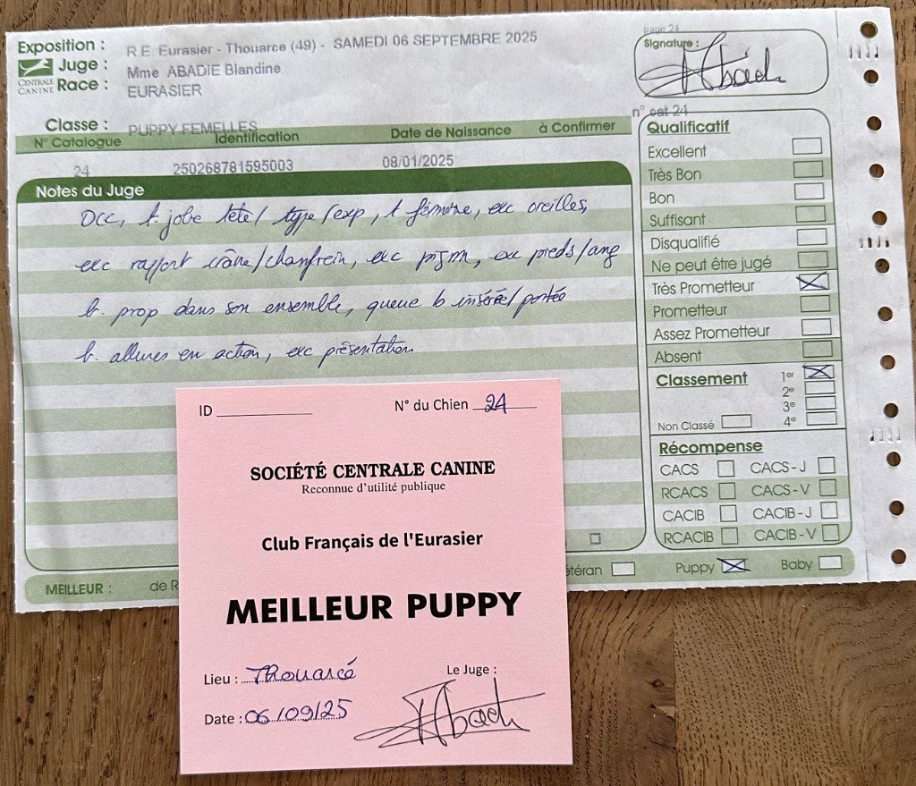 RE eurasier Thouarcé Mme Abadie samedi 6 septembre 2025 puppy très prometteur 1er meilleur puppy