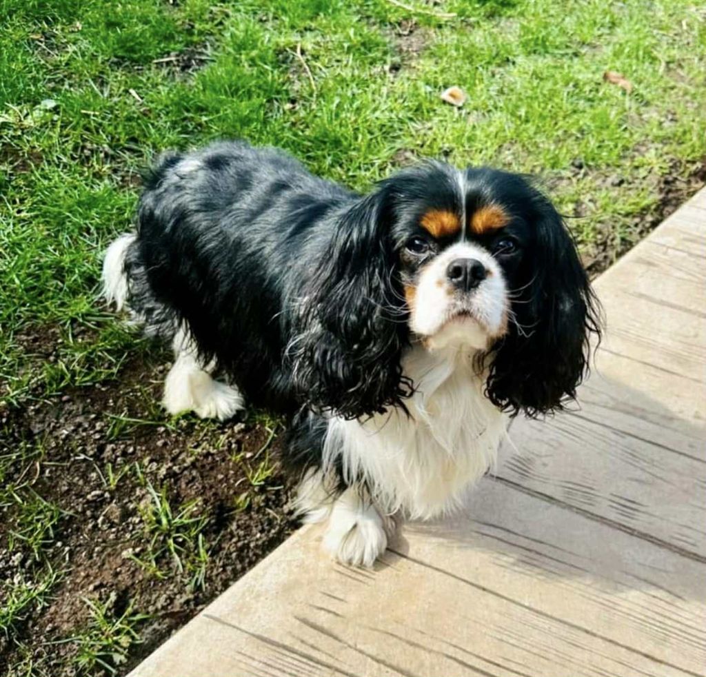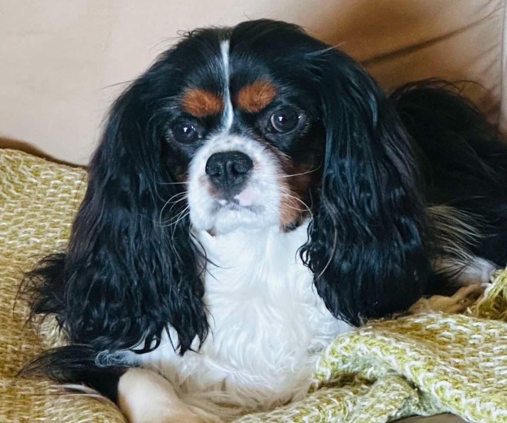 Tango est un adorable cavalier king charles tricolore. Sa robe et sa morphologie correspondent aux critères de la race. Il a un tempérament doux, affectueux et calme. C'est un chien équilibré, très bien dans ses pattounes. Il vit à la maison avec 3 autres cavaliers king charles, adore les humains et les enfants et s'entend bien avec les animaux en général.
