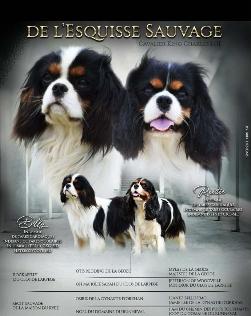 Né à l'élevage de l'Esquisse Sauvage, il a un beau pedigree, 0% de consanguinité et ses test de santé sont à jour et indemnes (09/05/2025). Coeur : Grade 0. EFS/CKCSID : Indemne non porteur. Tare oculaire : non porteur. Ses tests sont visibles sur la Centrale Canine.