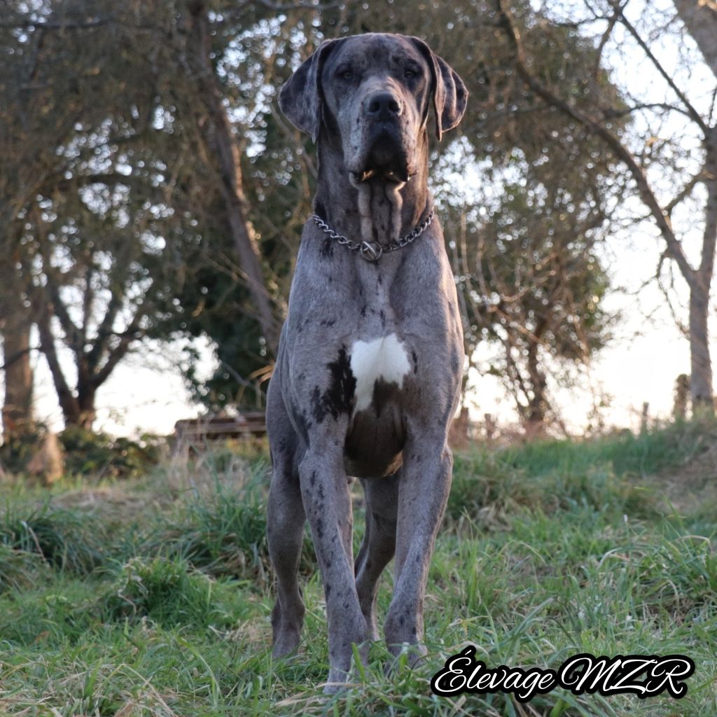 Mâle dogue allemand entier, sociable avec les chiots, excellent rappel, identifié, vacciné, vermifugé, inscrit au LOF et confirmé.