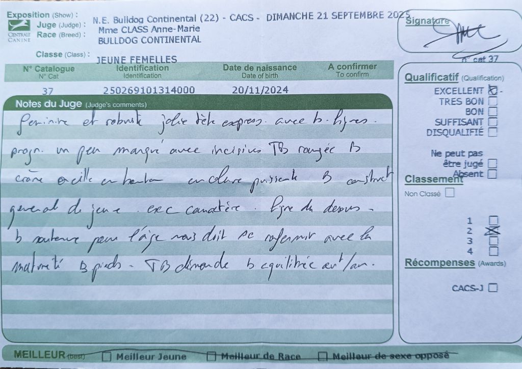 - 2ème excellent + TAN Nationale d'Elevage Créhen Septembre 2025