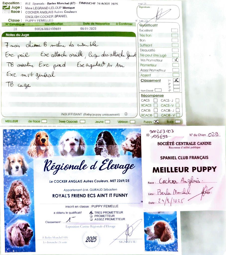 - R.E Spaniel Club Délégation Nord-Pas-de-Calais 2025 : 1er Très Prometteur classe Puppy, Meilleur Puppy