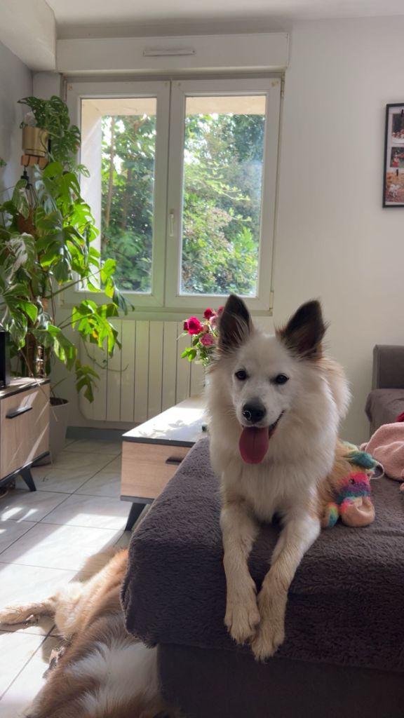 Sur le plan social, Vidia peut se montrer un peu réservée lors des premières rencontres avec des congénères, mais cela ne dure jamais longtemps. Très joueuse, elle finit rapidement par créer du lien et s’entend avec tout le monde. C’est une chienne équilibrée, joyeuse et bien dans ses pattes, qui incarne à merveille le tempérament sociable et dynamique du Berger Islandais.
