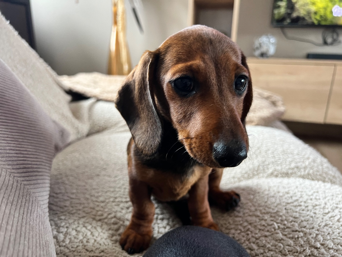 Chien Teckel poil ras Ah voilà simone du sapin epineux