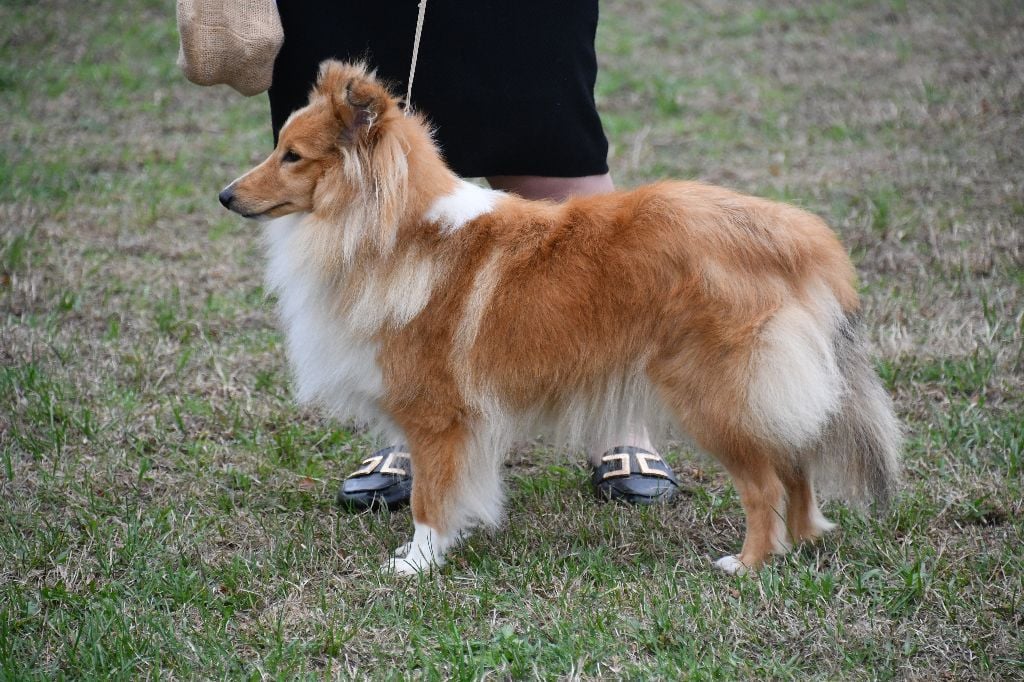 Excellente tête et expressionExcellent cou et poitrine corpsTrès bonne ligne dessusExcellent postérieurTrès bonne queue mais j'aurai aimé plus de longueurExcellente fourrure et mouvements