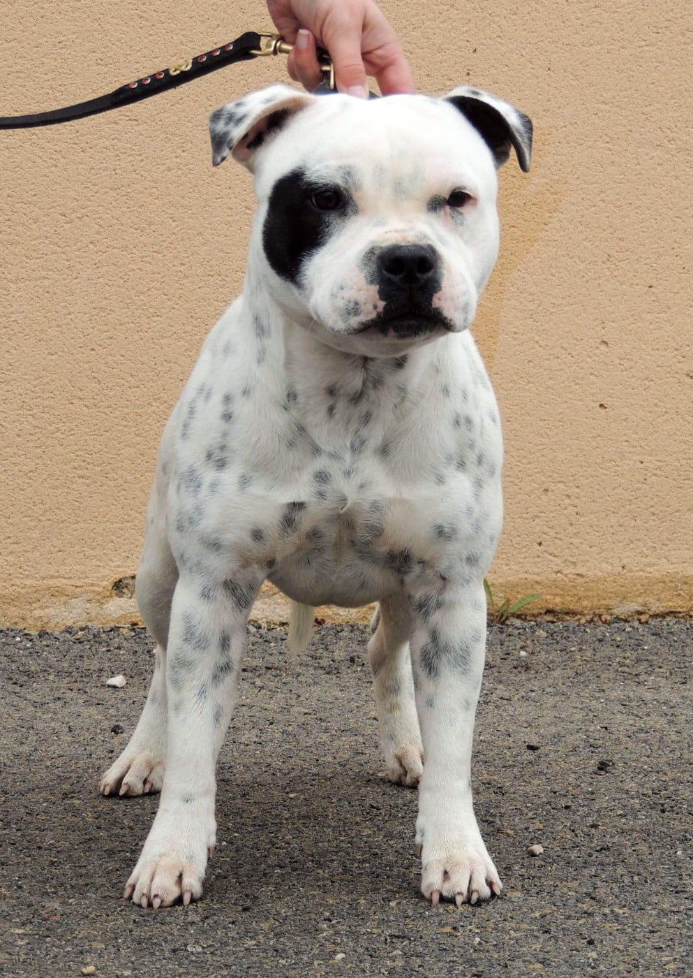 Très calme pour un staffie, stable, posé et proche de l’humain.
