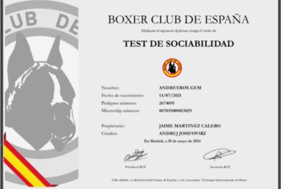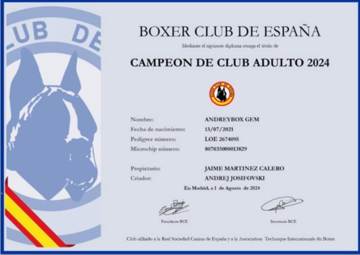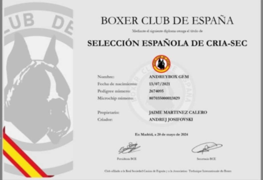 Pédigree de CH. ANDREYBOX GEM