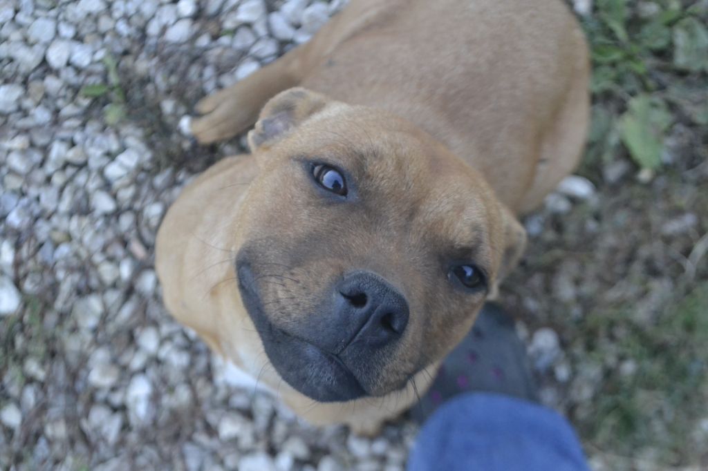 Chien Staffordshire Bull Terrier Alia dit ally nes pour être des anges