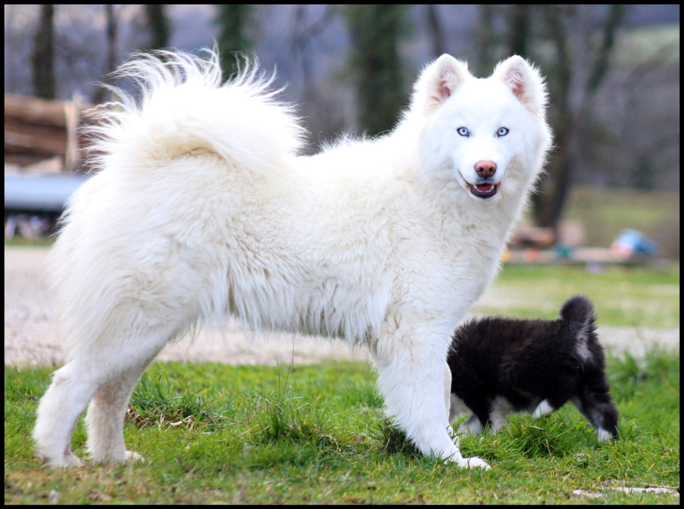 Pour ce mariage, je suis allée chercher un mâle importé de Russie qui me plaisait beaucoup : Andkoll Evindenc In Snow At Oukaya Forever dit « Mikado » afin d’apporter un sang nouveau à l’élevage. Cette union avec notre Prada, une chienne puissante, me donnait beaucoup d’espoir quant aux chiots à naître et je n’ai pas été déçue.