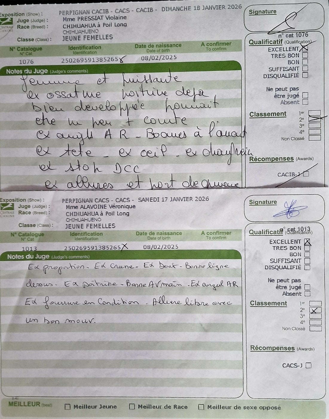 CACS SPÉCIALE DE RACE 17.01.25 ET CACIB 18.01.26