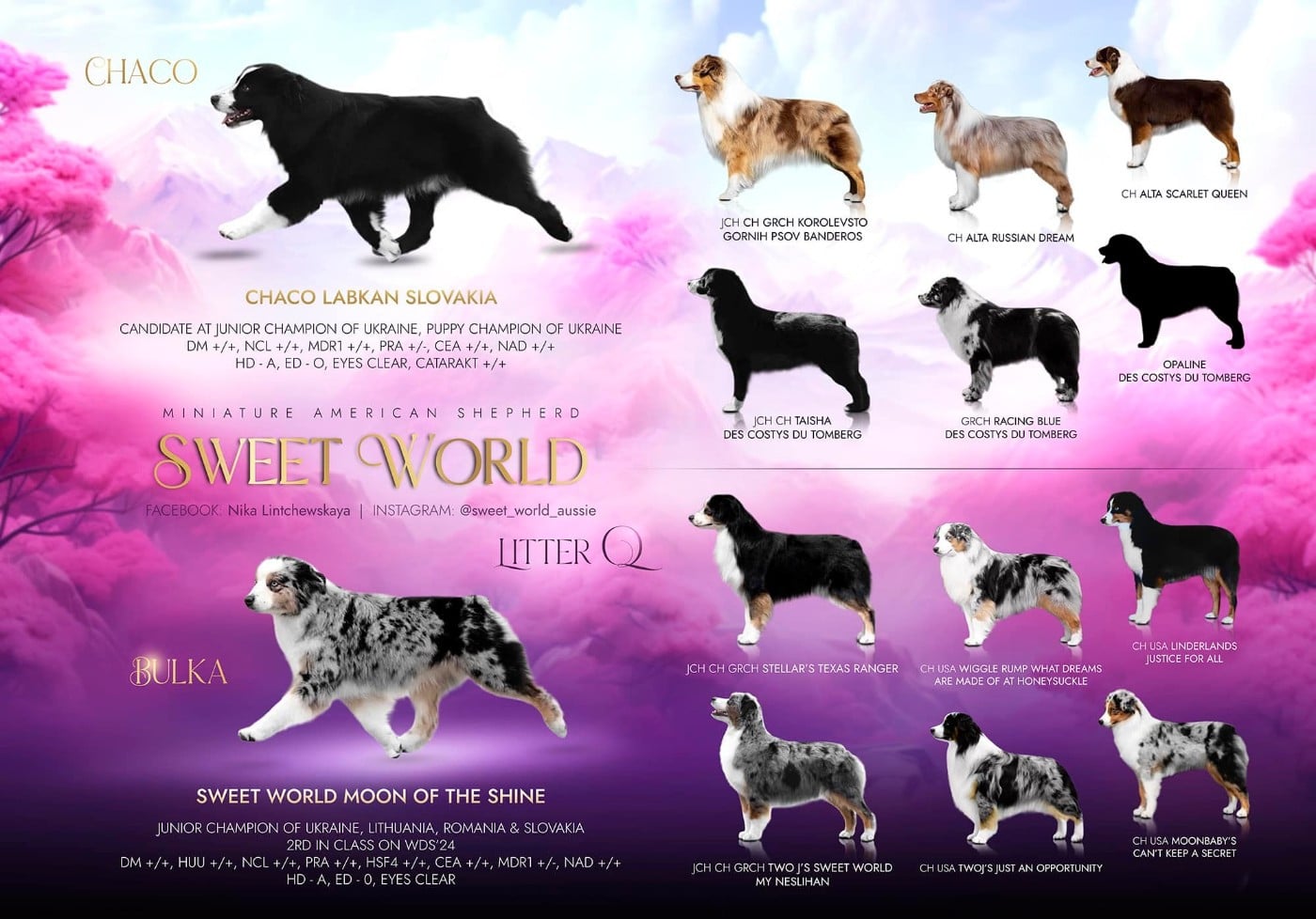 Pédigree de sweet world Que Sera of Moonglight Dreams