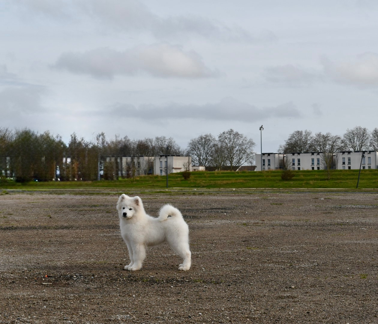 Chien Samoyède Cukrowa wata the glow of the snowy star