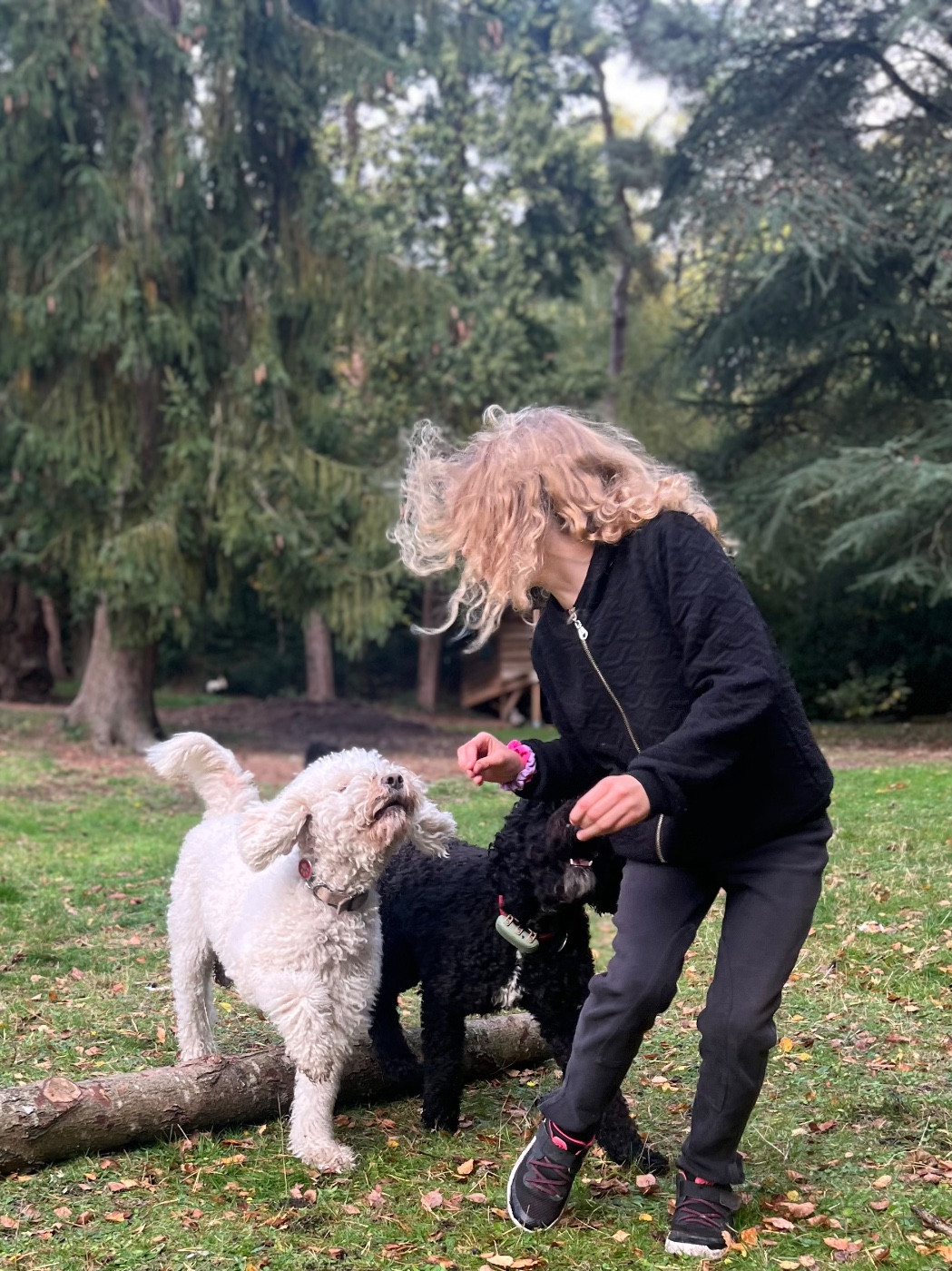 Elle apprécie autant les jeux avec les chiens que les moments complices avec les enfants.