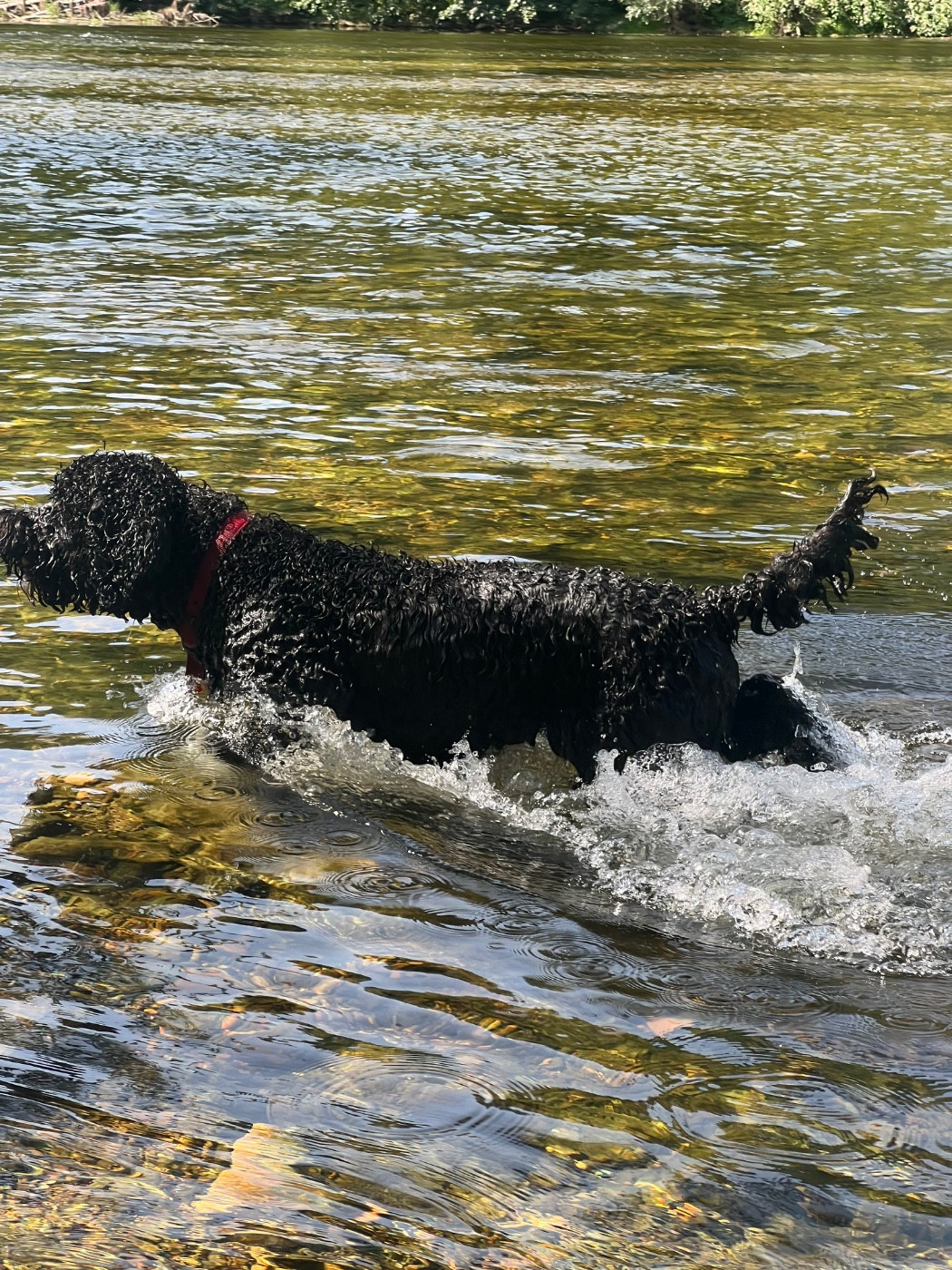 À la maison, elle retrouve son calme naturel et sa douceur. C’est une chienne discrète mais très présente, toujours proche, toujours à l’écoute, avec ce lien particulier des chiens sensibles qui aiment se reposer aux pieds de leurs humains.