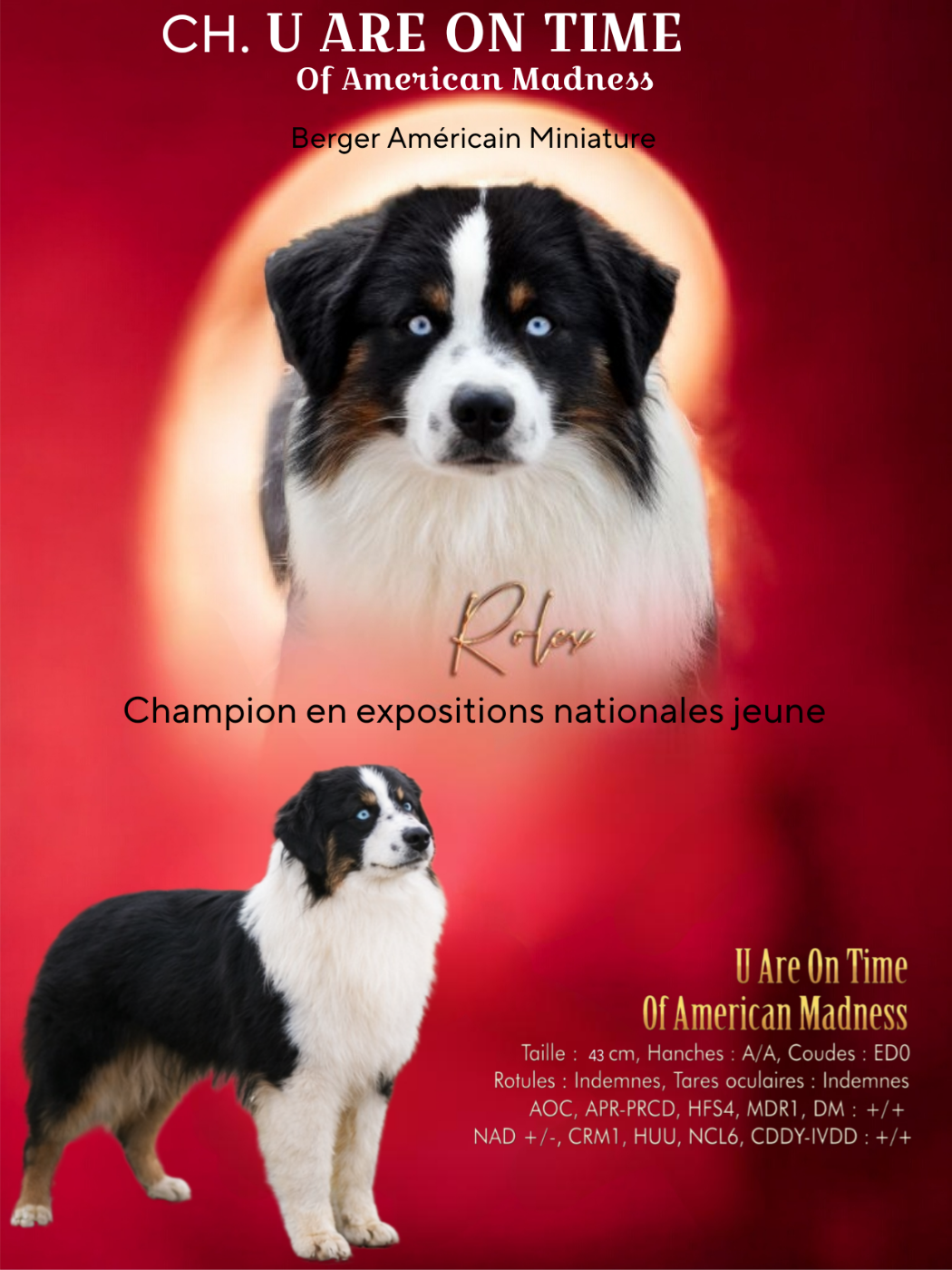 Chien Berger Américain Miniature CH. U ARE ON TIME Of American Madness