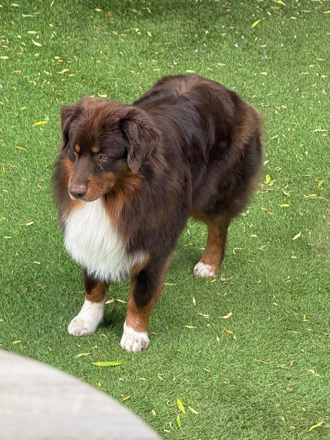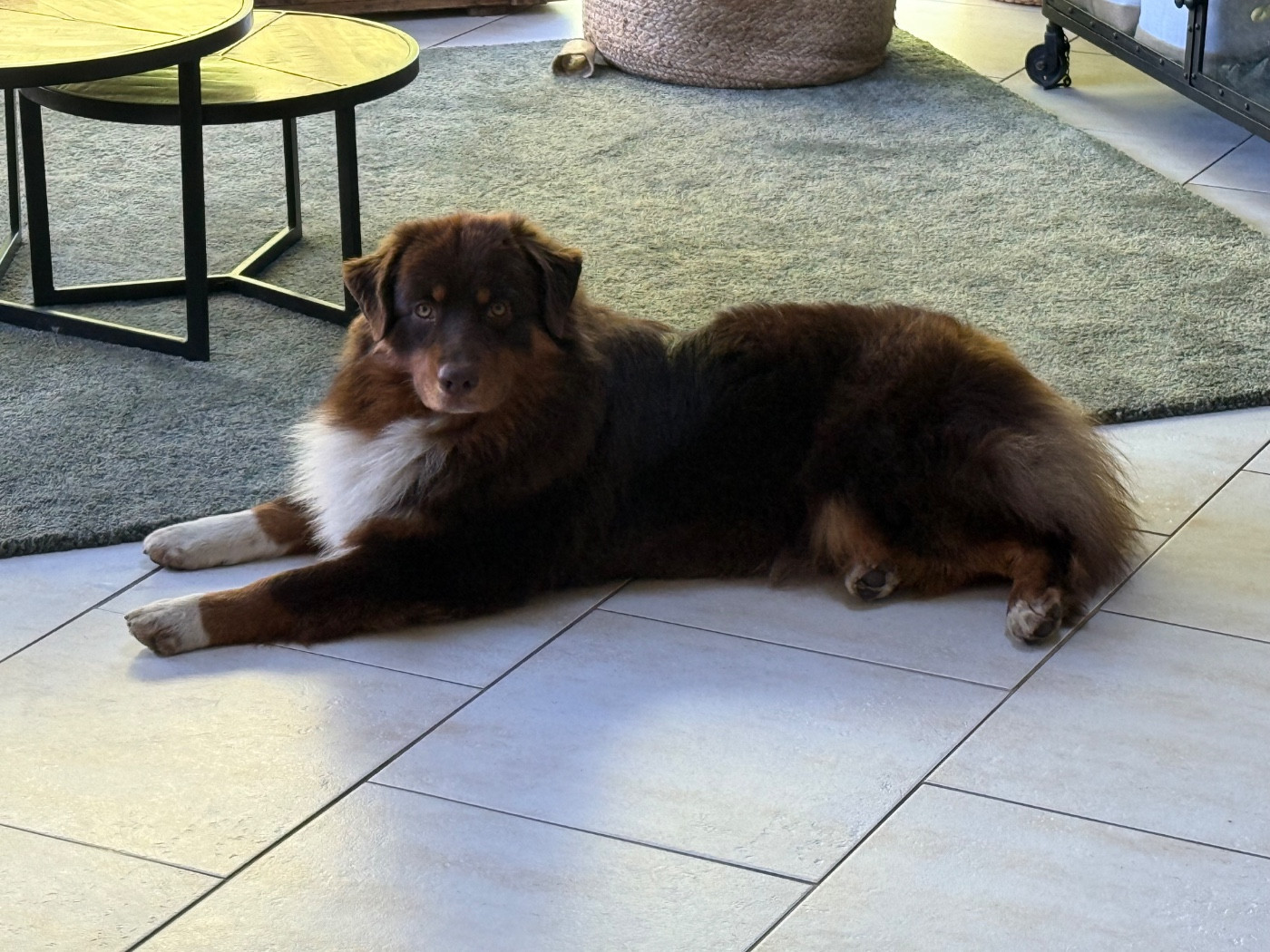 Chien polyvalent, Polo pratique le troupeau avec les moutons — activité pour laquelle le Berger australien est naturellement destiné. Il y prend un immense plaisir et démontre de très belles aptitudes : concentration, écoute, instinct marqué et vraie qualité de travail. Il s’investit avec sérieux tout en gardant son tempérament doux et appliqué.