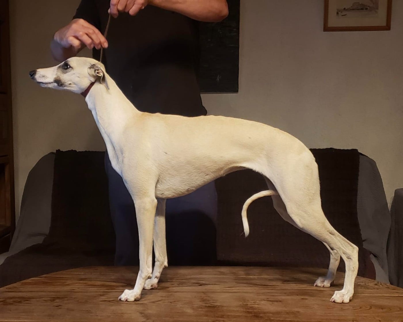 Chien Whippet U'Ran dite UNA Des Fées De L'Or Blanc