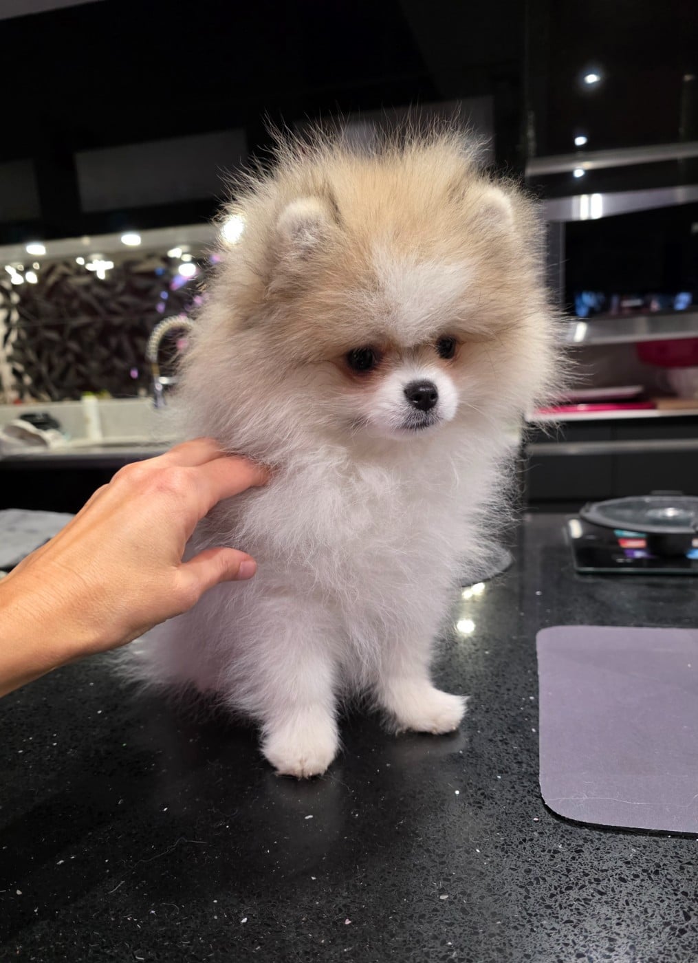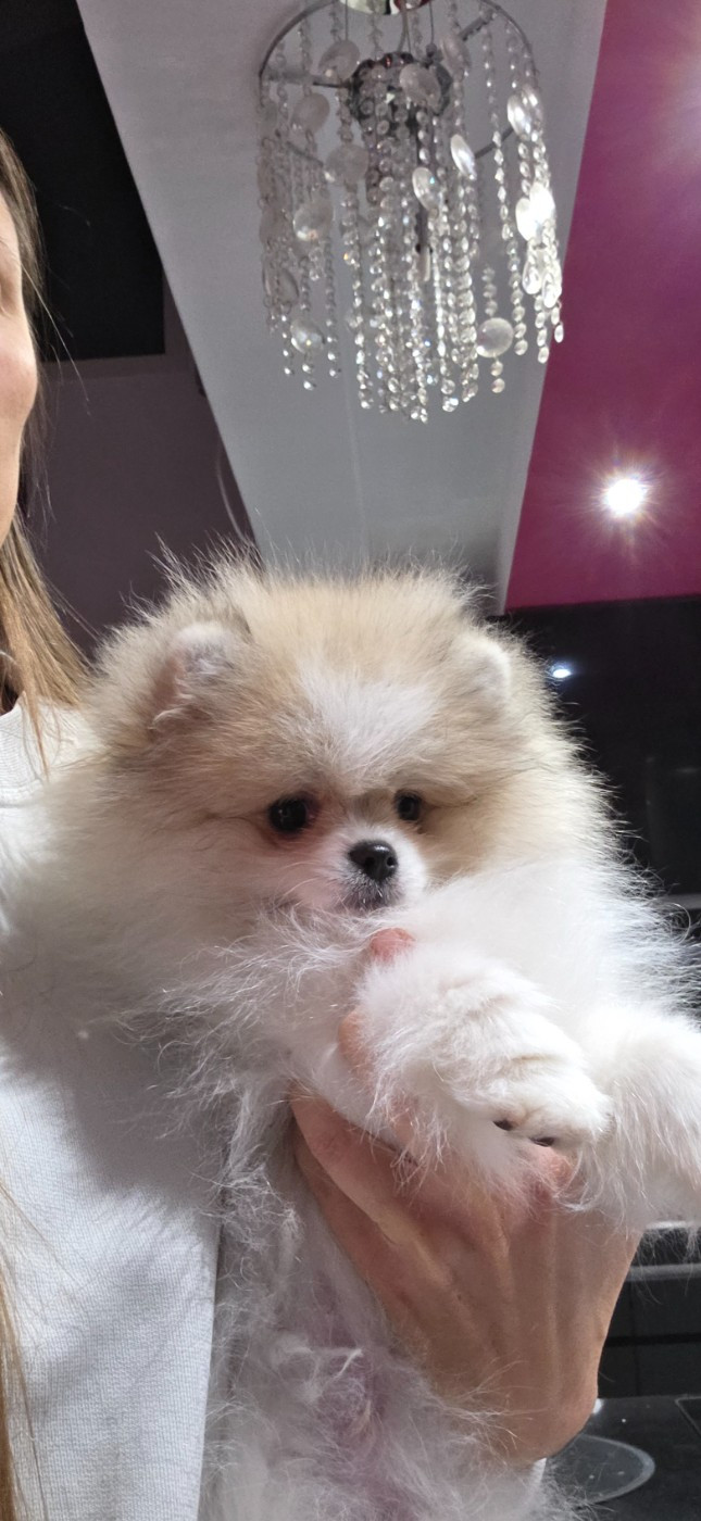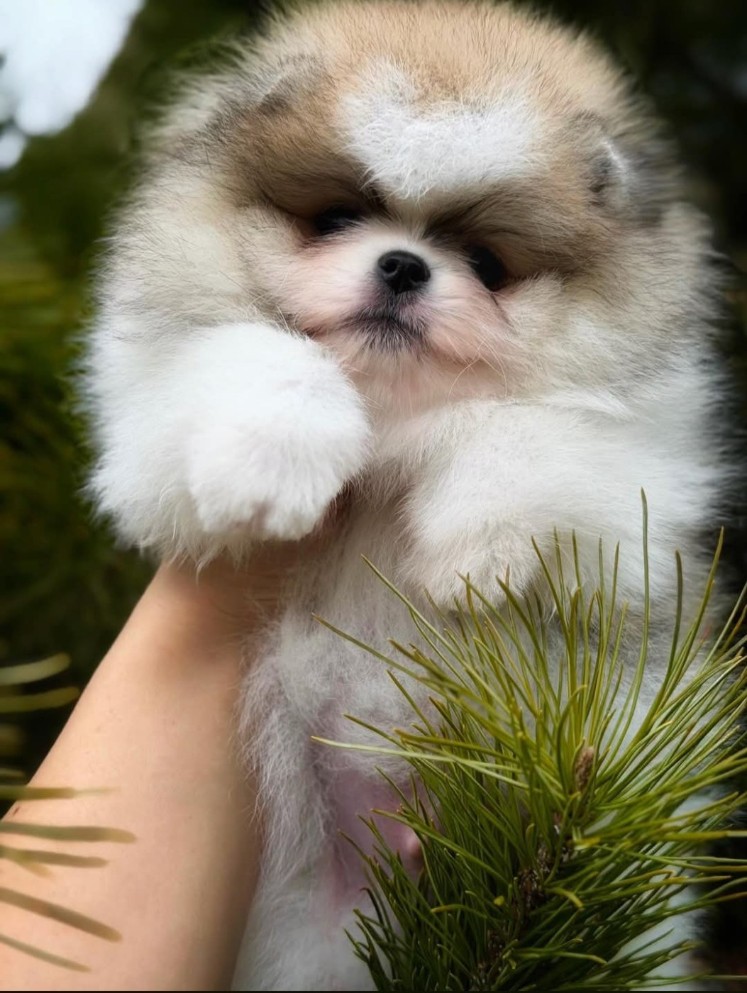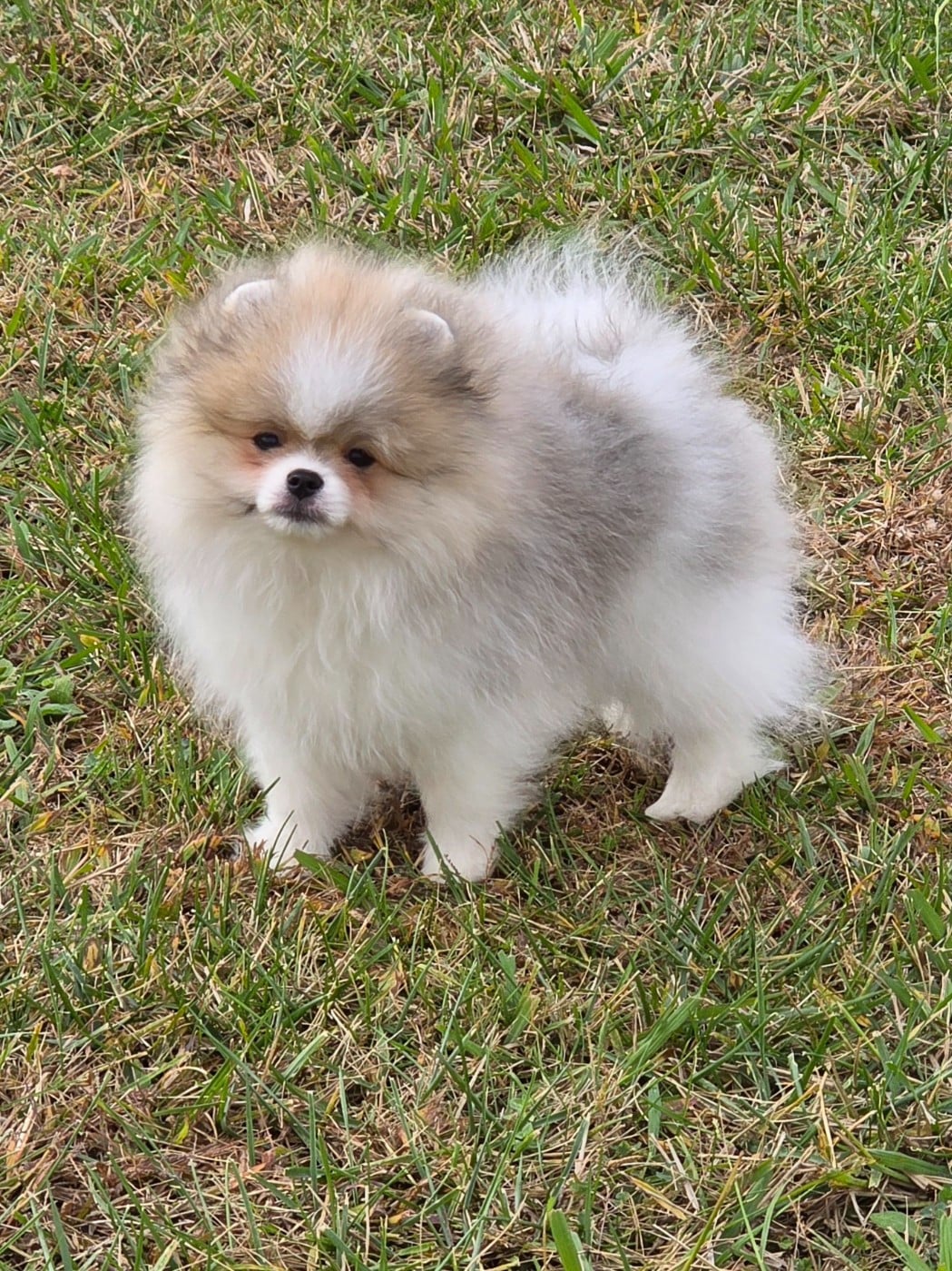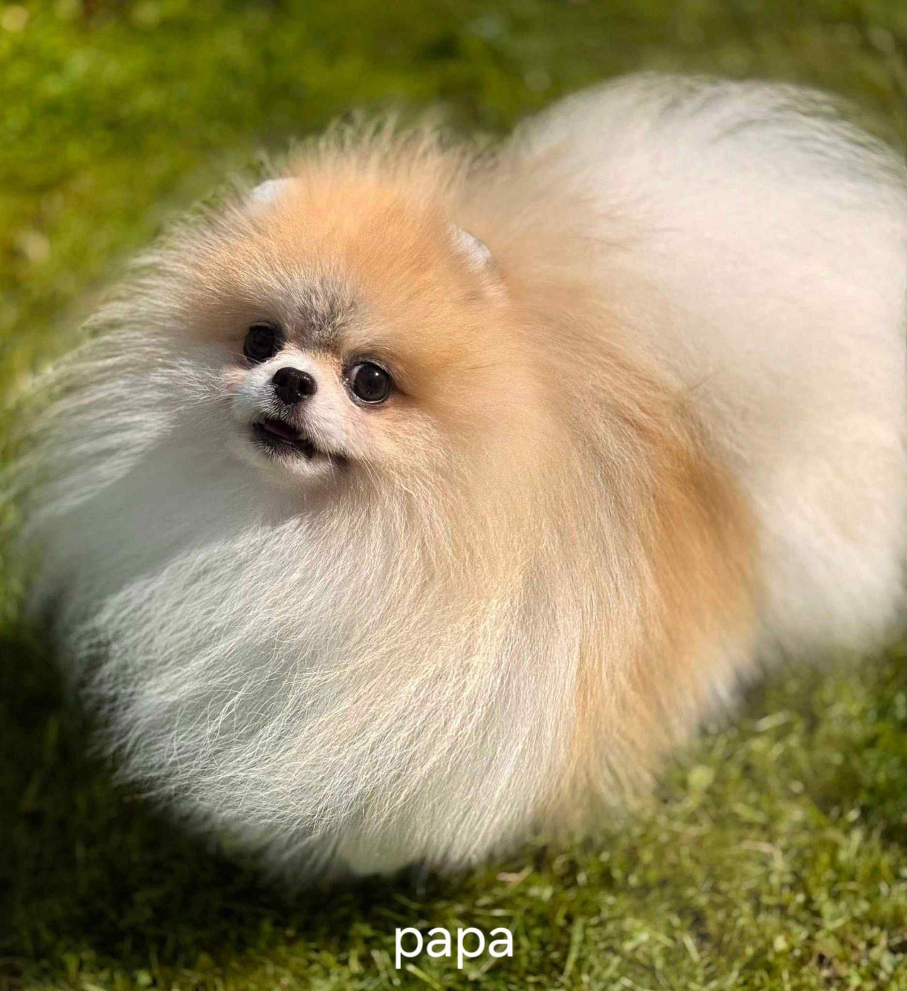 Fabio est un sublime Spitz nain Pomeranian à la robe particolor (panachée), une couleur rare en France dans ce type qui le rend absolument unique.