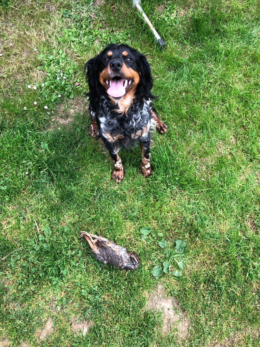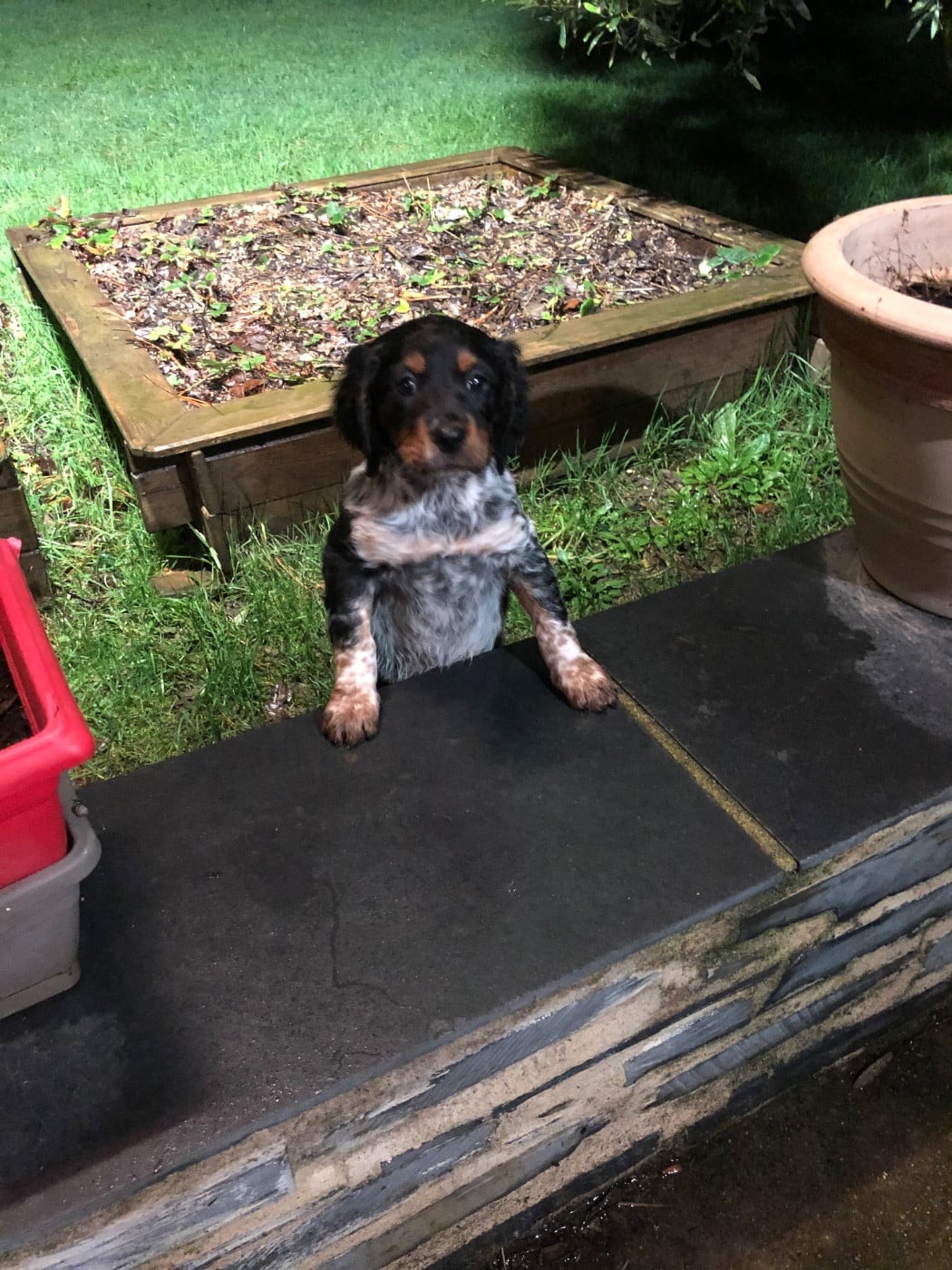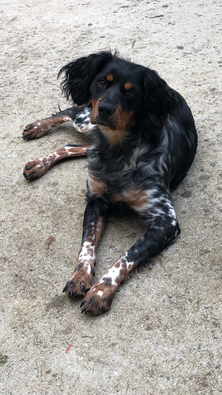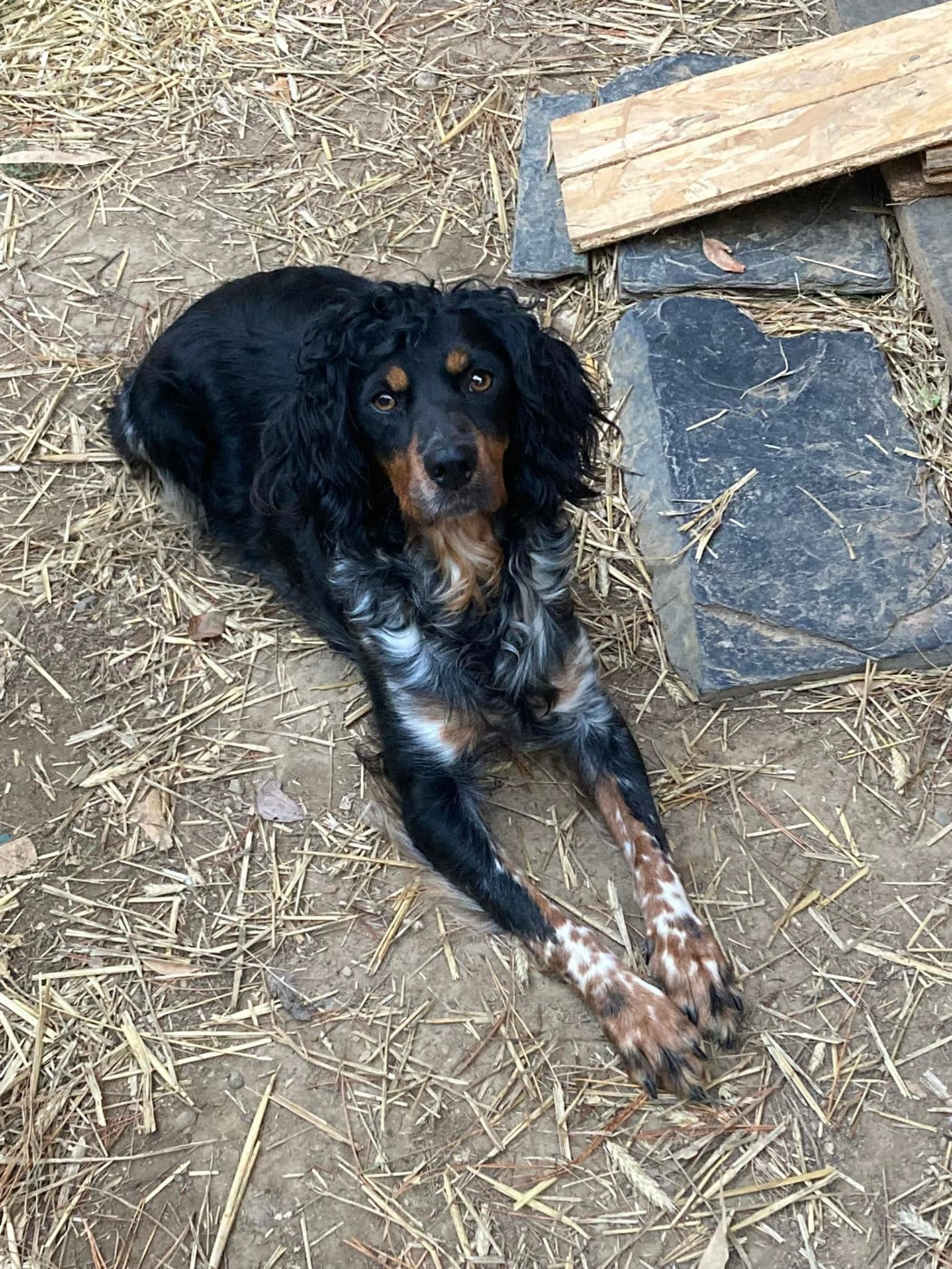 Reena, LOF 313625/51704 tricolore noir fauve née le 25/11/2020 issu du mariage de Bud et Herelle des Sablieres de Cadeuil. Superbe lignée (Saint Tugen, Saint Lubin, De Keranlouan).