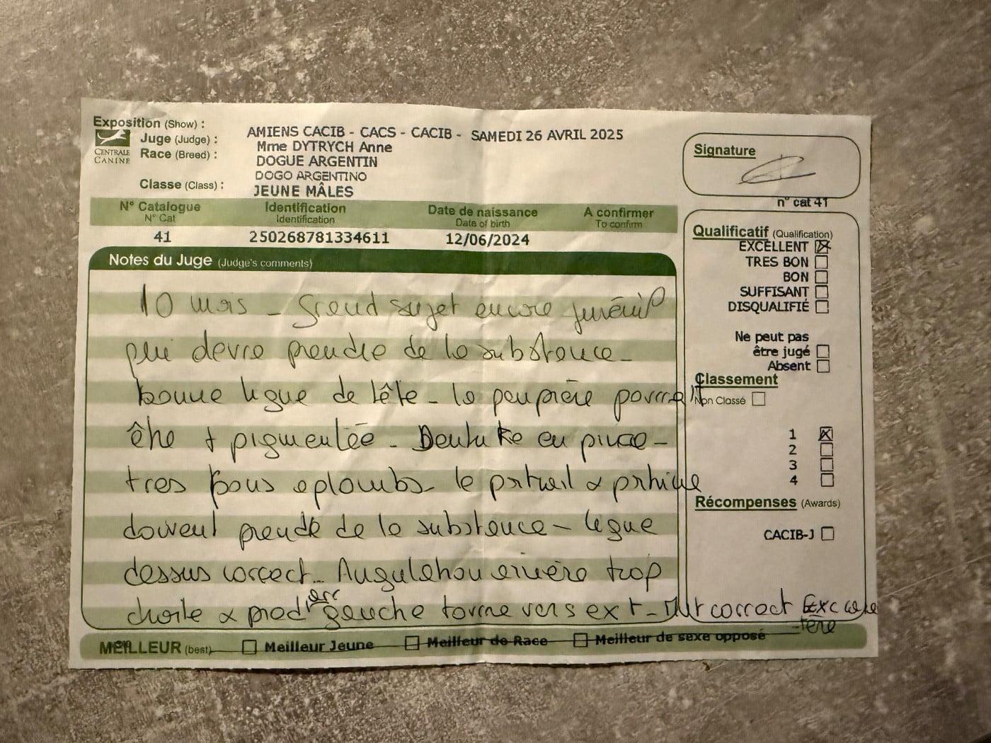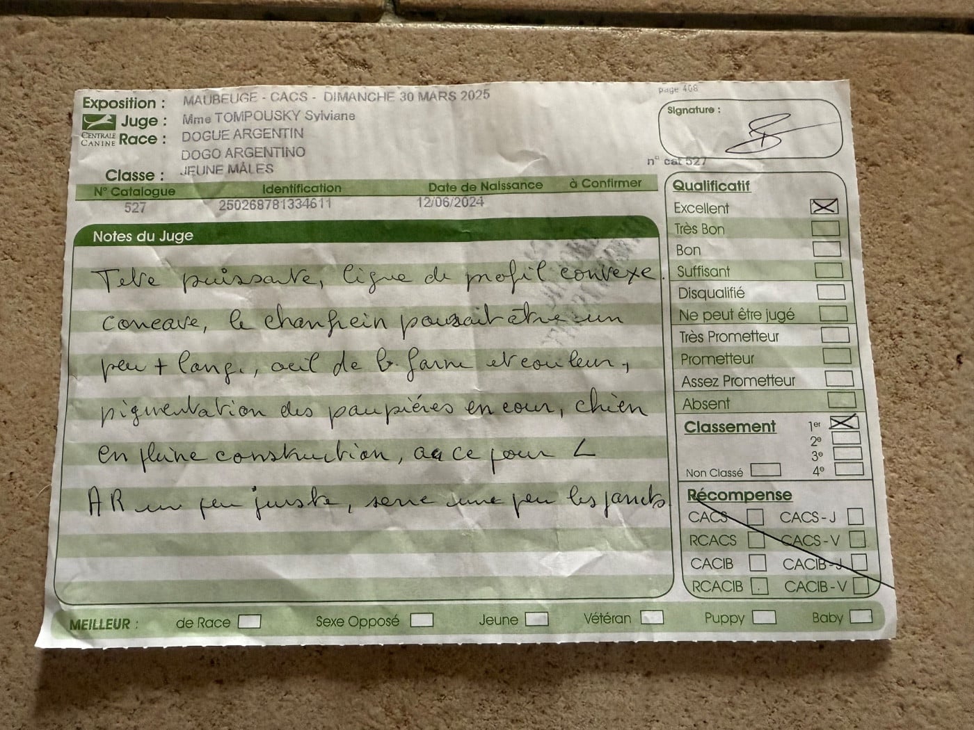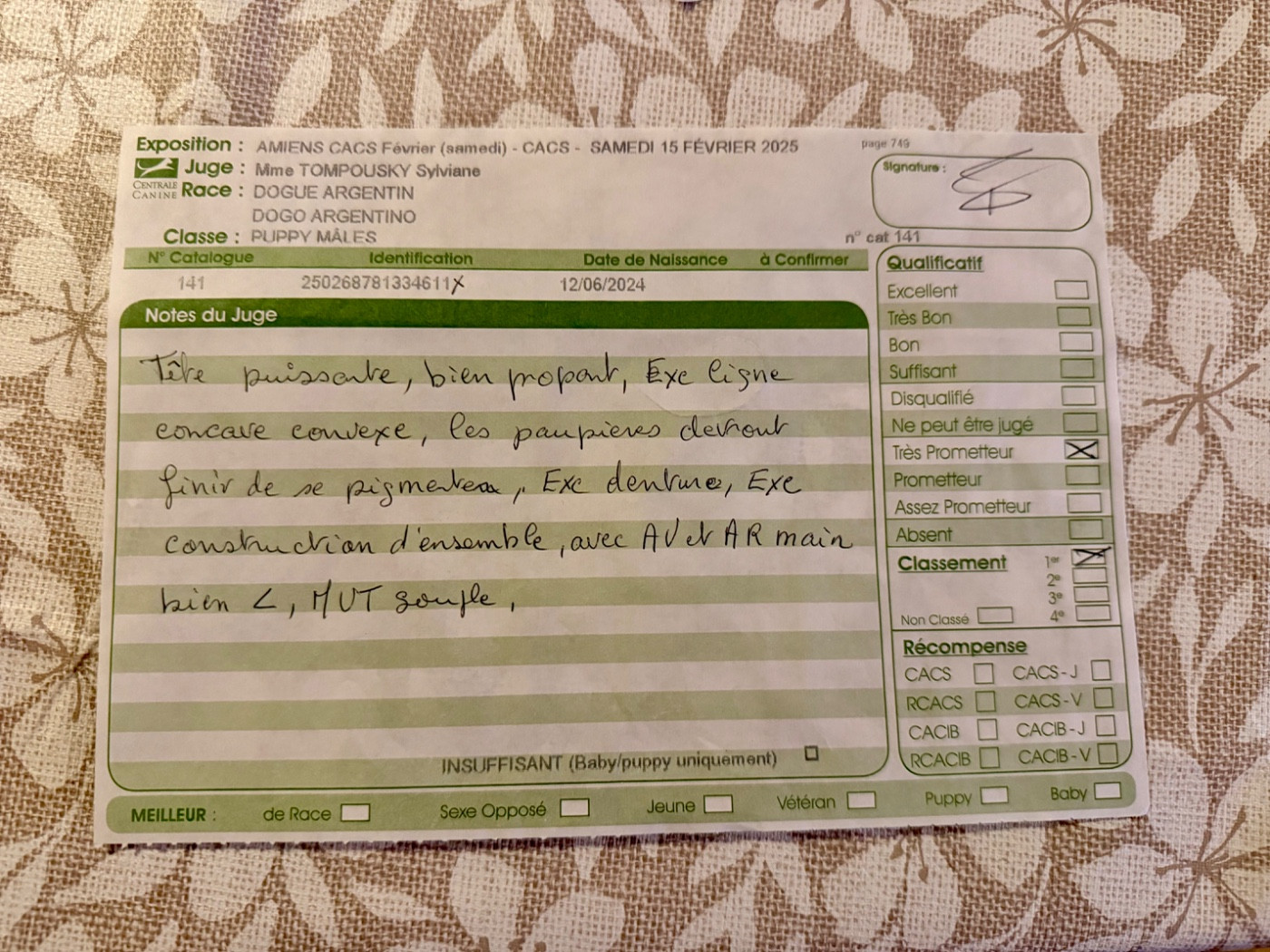 1er TRES PROMETTEUR,MEILLEUR PUPPY AMIENS 15/02/25 .